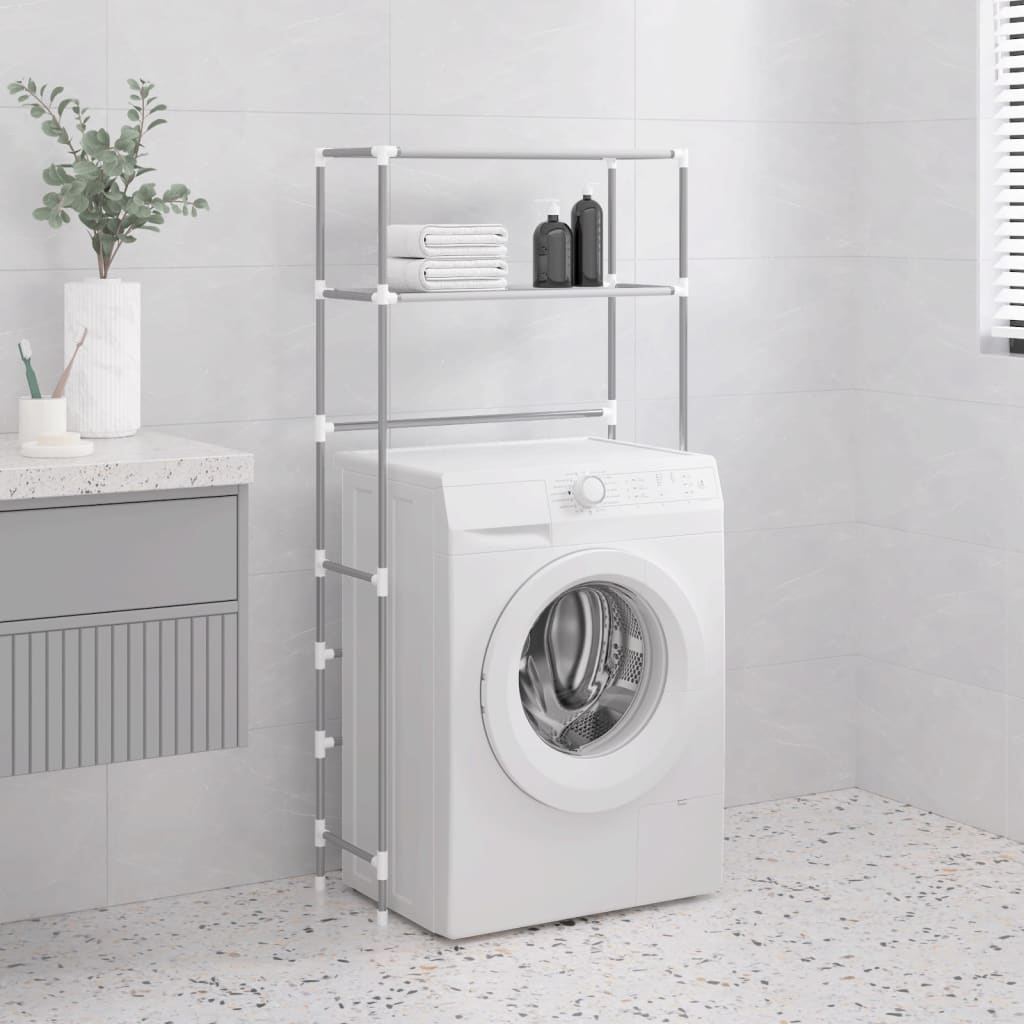 Dieses Waschmaschinenregal mit 2 Ablagen ist definitiv eine perfekte Lösung, um zusätzlichen Stauraum in einem überfüllten Bad oder einer überfüllten Waschküche zu schaffen. Robuste Struktur: Der Eisenrahmen sorgt für Robustheit und Stabilität.Platzsparend: Das Regal nutzt den freien Platz über der Waschmaschine optimal aus und schafft mehrere zusätzliche Ablageflächen, auf denen Waschmittel, Waschpulver, Shampoo, Badegel usw. aufbewahrt werden können.Auffälliges Design: Das aus Eisen und Vliesstoff gefertigte Waschmaschinenregal zeichnet sich durch ein schlichtes und dennoch stilvolles Design aus, das sich leicht in die Badeinrichtung integrieren lässt.Großartiger Ordnungshelfer: Mit diesem Toilettenregal sorgst du für Ordnung in deinem überfüllten Badezimmer oder in deiner Waschküche. Achtung:Um das Umkippen zu verhindern, muss dieses Produkt mit der mitgelieferten Wandhalterung gesichert werden.