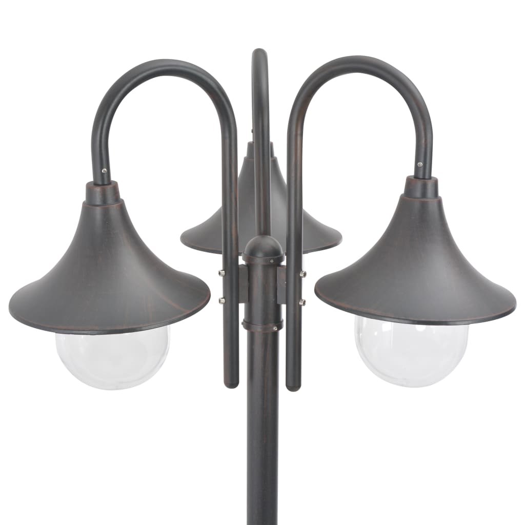 Diese 3-Laternen-Garten-Pollerleuchte ist für alle geeignet, die nach einer funktionalen, sicheren und stimmungsvollen Beleuchtung für ihren Garten suchen und dabei vor allem Wert auf Qualität und Langlebigkeit legen. Die qualitativ hochwertige Garten-Standleuchte besteht aus langlebigem Aluminium mit PVC-Lampenschirm, so dass eine jahrelange Nutzung gewährleistet wird. Die Außenleuchte hat 3 E27-Fassungen. Bitte beachten Sie, dass die Glühbirnen nicht im Lieferumfang enthalten sind.