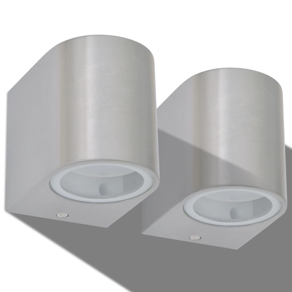 Dieses elegante LED-Wandleuchten-Set verfügt über ein modernes Design. Aus Aluminium gefertigt, jedoch in einer Edelstahloptik, werden diese Wandleuchten jeden Platz im Freien verschönern. Sie verfügen über einen integrierten Klarglas-Diffusor. Dank den eingebauten LEDs strahlt dieses stilvolle Wandleuchten-Set ein angenehmes, warmweißes Licht aus, das nach unten abgestrahlt wird. Dank ihrer IP44-Schutzart ist diese Wandlampe witterungsbeständig und langlebig; deshalb eignet sie sich hervorragend für den Außenbereich. Die Lieferung umfasst 2 Wandleuchten.