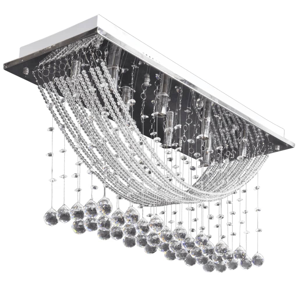 Diese prachtvolle und imposante Deckenlampe mit hochwertigen glitzernden Kristalldekorationen eignet sich ideal für die Nutzung in Ihrem privaten Wohnraum oder auf Geschäftsflächen. Diese moderne Deckenlampe wird ein einzigartiger Blickfang und eine große Bereicherung für jede Einrichtung sein. Die glänzenden Glaskristalle sind äußerst lichtdurchlässig und reflektieren das Licht sehr effektiv, wodurch ein herrliches Farbenspiel über das gesamte Spektrum entsteht. Mit dieser stylischen Lampe fügen Sie einen Hauch von Luxus zu Ihrem Einrichtungsstil hinzu. Der Lampenrahmen ist aus hochwertigem Metall gefertigt. Die Lampe kann einfach an der Decke montiert werden. Der Lieferumfang umfasst 1 x Deckenlampe.
