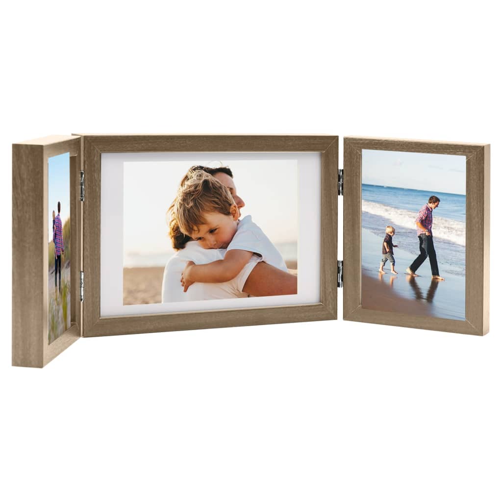 Stellen Sie Ihre schönsten Momente mit diesem trendigen Dreifach-Bilderrahmen zur Schau. Ihre Erinnerungen werden stilvoll präsentiert und ein echter Hingucker sein. Der aufklappbare Bilderrahmen kennzeichnet sich durch klassische gerade Linien und verleiht Ihrem Wohnraum eine lebendige und moderne Note. Die MDF-Platte an der Rückseite und das harte PS-Material an der Vorderseite bieten optimalen Schutz. Dank der Verriegelung auf der Rückseite können Sie Ihre Bilder ganz einfach austauschen. Durch sein Klappdesign kann dieser Fotorahmen ohne Ständer auf dem Tisch stehen.