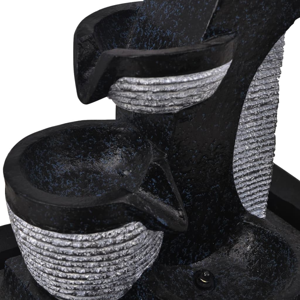 Dieses LED-Wasserspiel ist eine ausgezeichnete Wahl, um Ihrem Wohnraum eine natürliche, beruhigende Atmosphäre zu verleihen. Dieses Wasserspiel ergänzt jede Inneneinrichtung wunderbar. Der Zimmerbrunnen hat einen vierstufigen Wasserfall und ist mit LED-Beleuchtung ausgestattet, was besonders nachts für einen atemberaubenden visuellen Effekt sorgt. Es besteht aus Kunstharz und ist UV-beständig. Das bedeutet, dass es bei direkter Sonneneinstrahlung wunderschön aussieht und seine Farbe lange behält. Mehrere Wasserströme und das beruhigende Rauschen des tropfenden Wassers schaffen eine entspannende und meditative Atmosphäre. Der im Lieferumfang enthalten hochwertige Pumpe sorgt für einen sicheren und zuverlässigen Vorgang. Dieses in sich geschlossene Wasserspiel kann überall in Ihrem Haus aufgestellt werden.