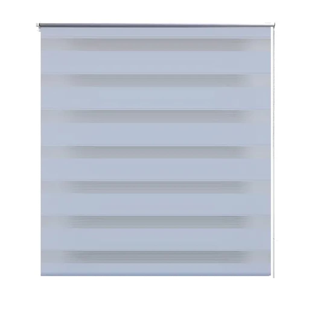 Den neusten Trend in Sachen Licht- und Sichtschutz bietet Ihnen dieses hochwertig verarbeitete Doppelrollo. Durch die 2 parallel verlaufenden Stoffbahnen mit abwechselnd gewebten, transparenten und blickdichten Streifen können Sie mit Hilfe des Kettenzuges das einfallende Licht ganz individuell dosieren. Dabei entstehen wundervolle Lichtspiele. Bitte wählen Sie aus 11 unterschiedlichen Größen. Einfache Bedienung durch Seitenzugkette, das Rollo kann in jeder Höhe gestoppt werden, dies ermöglicht eine komplette oder auf Wunsch nur teilweise Verdunklung des jeweiligen Raumes. Die Klemmhalter werden einfach auf die Innenkante des oberen Fenster-flügels gesetzt. Jegliches Bohren entfällt. Material:100 % Polyester, mit Metallwelle 18 mm (Durchmesser) Kette 2 m lang, Kettenfarbe: weiß Bitte beachten Sie, dass hier angegebene Bestellmaß ist das Trägeraußenmaß, das Stoffmaß des Rollos ist ca. 3 cm geringer. WARNUNG: Kleine Kinder könnten von Schlaufen in Zugschnüren, Ketten, Bändern oder Innenschnüren, welche das Produkt betreiben, stranguliert werden. Um Strangulation oder Verfangen zu vermeiden, halten Sie Schnüre und Kordeln außerhalb der Reichweite von kleinen Kindern. Schnüre könnten sich um den Hals des Kindes wickeln. Schieben Sie Möbel wie Betten oder Kinderbetten weg von Fensterrolloschnüren. Knoten Sie die Schnüre nicht aneinander. Stellen Sie sicher, dass die Schnüre sich nicht verwickeln und keine Schlaufen bilden. Lieferumfang: 1 x 50 cm obere Aluminiumschiene mit 47 x 100 cm Stoff in Zebramuster 1 x 50 cm obere Schiene, 1 x 50 cm schwere untere Schiene 2 x Haken, 2 x Bügel, 1 x Kettenhalter, 2 x Dichtungsring und 1 x Kugelkette.