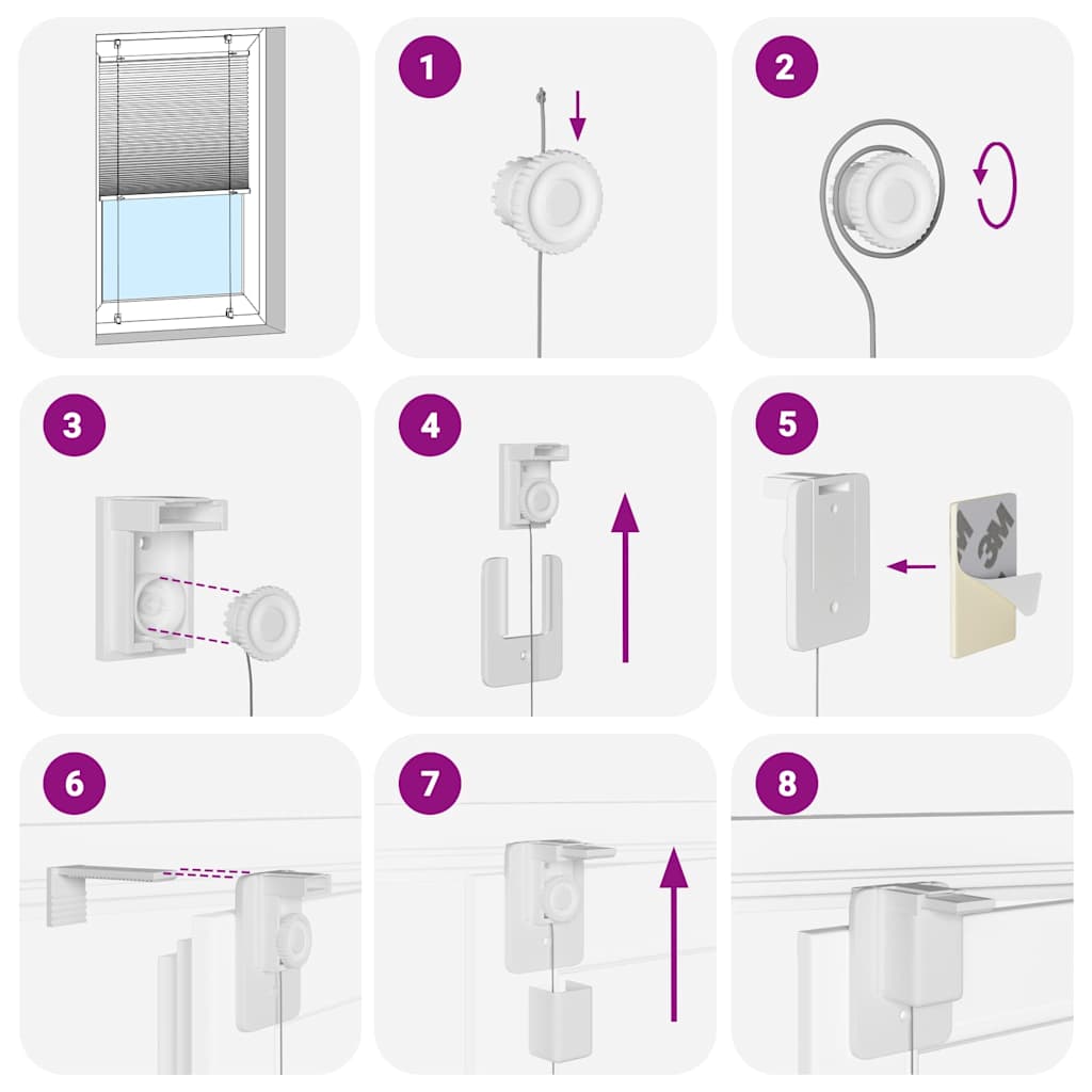 Mit diesem Plissee, das Privatsphäre und Eleganz bietet, wertest du deinen Raum stilvoll und funktional auf. Langlebig und pflegeleicht: Das Plissee aus 100 % Polyester ist langlebig und verschleißfest. Außerdem sind sie leicht zu reinigen. In der Regel müssen sie nur leicht abgestaubt oder mit einem feuchten Tuch abgewischt werden.Sicht- und Sonnenschutz: Das Rollo ist nicht transparent, aber auch nicht vollständig verdunkelnd und bietet mit seinem plissierten Stoff optimalen Sicht- und Blendschutz. Du kannst den Sichtschutz durch Hoch- oder Herunterschieben einstellen.Zwei Montagemöglichkeiten: Du kannst das Plissee je nach Bedarf mit Schrauben oder ohne Bohren mit Klemmträgern an der Wand oder am Fenster befestigen.Elegantes Design: Dank seines schlichten und modernen Designs passt dieses Plissee mühelos zu einer Vielzahl von Raumeinrichtungen. Du kannst es im Wohnzimmer, Schlafzimmer, Büro und so weiter verwenden. Achtung:Bewahren Sie Kabel außerhalb der Reichweite von Kleinkindern auf. Kabel könnten sich um den Hals von Kindern wickeln. Gut zu wissen:Bevor Sie Jalousien kaufen, messen Sie zunächst Ihr Fensterglas aus. Ein kleiner Tipp: Der Stoff ist etwas schmaler als die Gesamtbreite, einschließlich der Halterungen.Um sicherzustellen, dass deine neuen Rollos vollständigen Schutz bieten, füge einfach 0,6 cm zur Breite des Fensterglases hinzu, wenn du berechnest, was du bestellen möchtest.