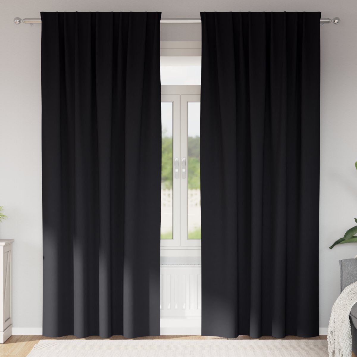 Dieses Set von Verdunkelungsvorhängen ist genau das, was du brauchst, um das Licht draußen zu halten und deine Privatsphäre zu schützen. Sie sind perfekt für Schlafzimmer und Wohnzimmer und bieten einen coolen Stil, der in moderne Räume passt. Der dicke Polyester blockiert sämtliches Licht, damit du in Ruhe chillen oder deine Shows ohne Ablenkung genießen kannst. Robustes Polyestergewebe - Diese Verdunkelungsvorhänge sind aus hochwertigem Polyester gefertigt, das weich und langlebig ist. Sie blockieren bis zu 95% des Lichts und sind farbecht, sodass sie auch in sonnigen Ecken toll aussehen. Manuelles Steuersystem - Die Vorhänge haben ein einfaches manuelles Öffnungssystem, mit dem du sie mit einem schnellen Zug einstellen kannst. Das sorgt für einen reibungslosen und leisen Betrieb und ein ordentliches Ergebnis jedes Mal. Innen- und Außenmontage-Optionen - Diese Vorhänge können außen am Fenster montiert werden, was für einen größeren Effekt sorgt und totale Privatsphäre und Dunkelheit gibt. Die Außenmontage-Option lässt dich deine Fenster komplett abdecken und ist ideal für verschiedene Fensterarten und -größen. Zeitgenössisches Design - Mit einem schlanken, modernen Look sind diese Vorhänge die perfekte Ergänzung für jeden zeitgemäßen Raum. Ihr minimalistisches Design wertet deinen Raum auf und bleibt dabei stylish und funktional. Einfache Pflege - Halte diese Vorhänge frisch, indem du sie schnell abstaubst oder leicht mit einem Handstaubsauger absaugst. Ihr Polyesterstoff lässt sich einfach reinigen, sodass sie immer sauber und trendy aussehen.