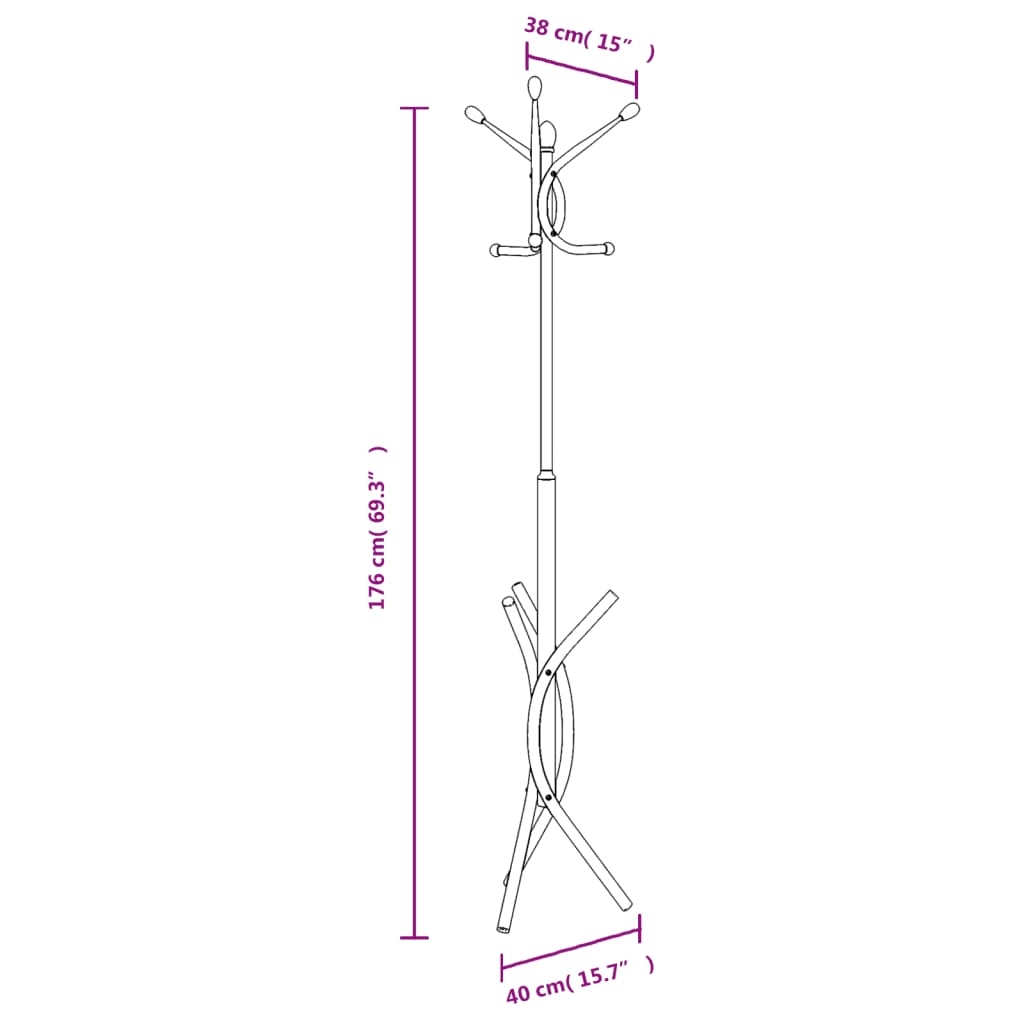 Auf diesem praktischen Garderobenständer kannst du deine Sachen ordentlich und griffbereit aufbewahren! Stabiles und robustes Gestell: Eisen ist ein starkes und hartes Material. Es ist ein solider Favorit im Industrie- und Möbelbau. Aus Eisen gefertigt, ist dieser Kleiderständer robust und auf eine lange Lebensdauer ausgelegt. Die dreieckige Basis sorgt für ausgezeichnete Stabilität.Viel Stauraum: Der Kleiderständer verfügt über 9 Haken, die viel Platz zum Aufhängen von Kleidungsstücken, Taschen, Hüten und vielem mehr bieten. Dank der Haken in unterschiedlichen Höhen lassen sich deine Sachen ganz ordentlich verstauen.Schutz der Kleidung und des Bodens: Die klassischen Kugelkappen aus Holz an den Haken schützen deine Kleidung vor Kratzern, während die Endkappen der Beine deinen Fußboden vor Kratzern schützen und für zusätzliche Stabilität sorgen.Breite Anwendung: Diese praktische Standgarderobe eignet sich perfekt für den Flur, das Wohnzimmer, Schlafzimmer oder jedem Raum aus deinem Zuhause, in dem du für mehr Ordnung sorgen möchtest!