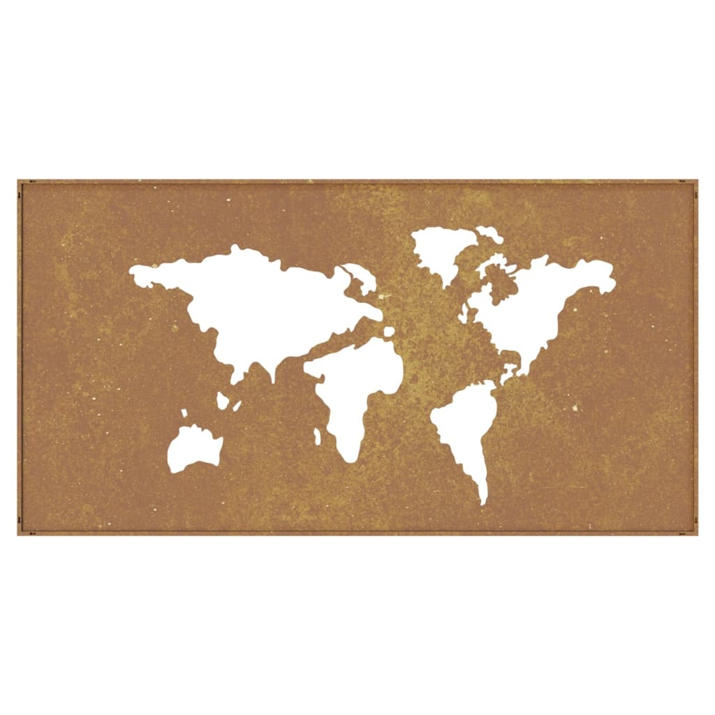 Verwandle eine leere Wand oder einen Zaun in ein Meisterwerk mit dieser Garten-Wanddeko. Langlebiges Material: Cortenstahl ist ein wetterfester Stahl, der von Natur aus korrosionsbeständig ist. Er bildet eine schützende Rostschicht gegen Korrosion, sobald er der Witterung ausgesetzt wird. Du brauchst ihn also nicht zu streichen. Dadurch kannst du Wartungs- und Reparaturkosten einsparen. Die markante braune Farbe des Cortenstahls ist sicherlich ein Blickfang. Schließlich ist wetterfester Stahl außerordentlich langlebig und hält dem Test der Zeit stand.Exquisites Design: Die Wanddekoration aus Metall weist ein hohles Design mit der Weltkarte auf, das deinem Garten eine ansprechende Optik verleiht.Einfache Montage: Die Outdoor-Wanddeko ist dank der Befestigungslöcher auf der Rückseite einfach anzubringen. Gut zu wissen:Dieses Produkt ist noch nicht verrostet und weist beim Empfang eine normale Metallfarbe auf. Rost wird sich im Laufe der Zeit bilden. Du kannst den Rostprozess beschleunigen, indem du es mit Seifenwasser und Salzwasser besprühst. Um deine Kleidung fleckenfrei zu halten, vermeide den Kontakt mit der sich bildenden Rostschicht.