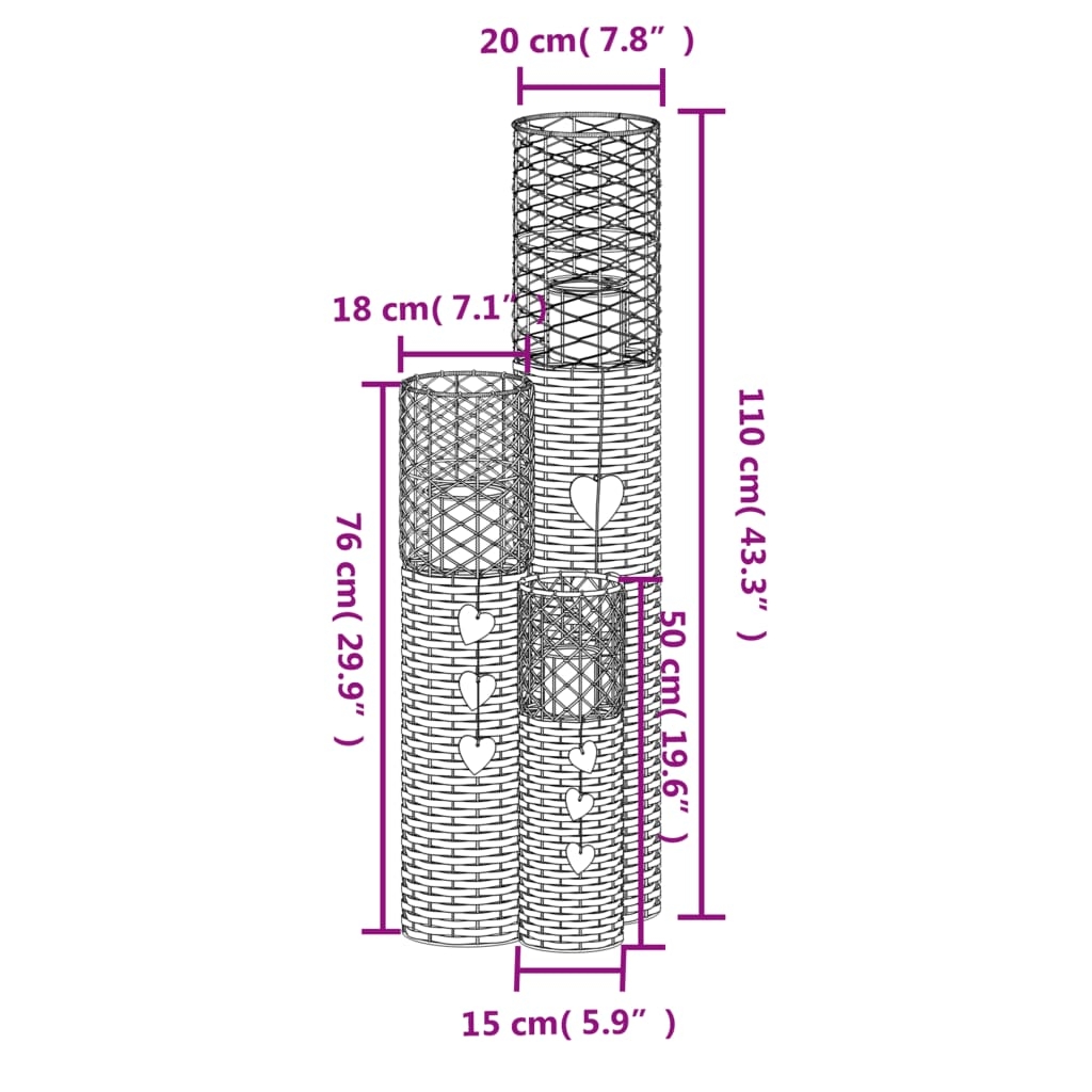 Schaffe eine warme und romantische Atmosphäre in deinem Haus oder im Garten mit diesen eleganten Kerzenhaltern! Von der Natur inspiriertes Design: Die Kerzenlaterne ist aus natürlichem Weidengeflecht handgefertigt und verleiht dadurch deinem Interieur einen Hauch von natürlicher Schönheit.Robuste Halterung: Die Heimdekoration verfügt über ein Glasgefäß, in dem die Kerzen einen sicheren Platz finden.Vielseitig einsetzbar: Das Set enthält drei Kerzenständer in 3 verschiedenen Größen, die sich ideal für den Einsatz im Innenbereich wie in deinem Wohnzimmer, auf der überdachten Veranda, in der Küche oder im Schlafzimmer eignen und auch im Außenbereich verwendet werden können. Zudem eignen sie sich für verschiedene Anlässe wie Hochzeiten, Bankette, Partys, Feiern usw.