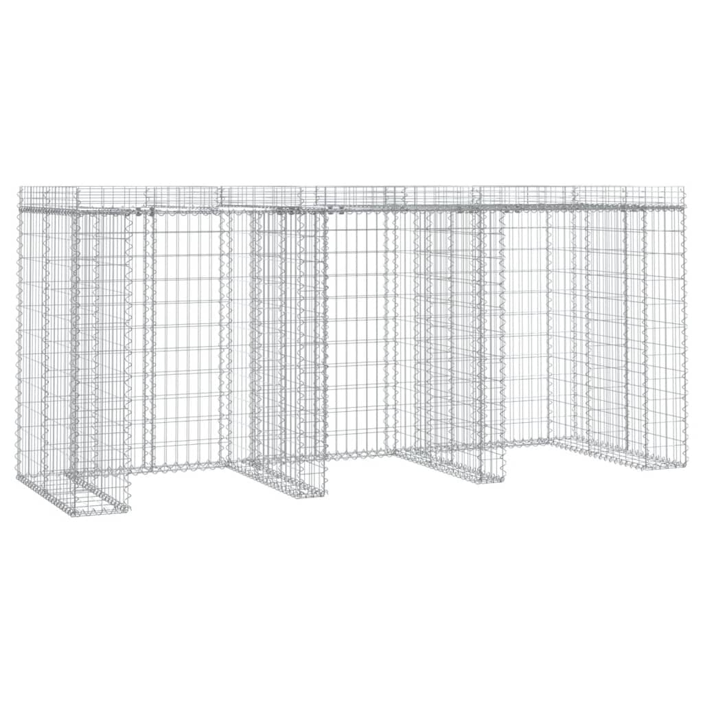 Diese Gabionen-Mülltonnenbox ist eine gute Wahl, um deine Mülltonne in deinem Garten oder auf deiner Terrasse außer Sicht zu halten. Langlebiges Material: Er ist aus korrosionsbeständigem, verzinktem Eisen gefertigt, das für Stabilität und Haltbarkeit sorgt. Aus robustem Draht mit einem Durchmesser von 3,5 mm gefertigt, stellt die Gabionenwand eine schöne Dekoration in deinem Garten zu jeder Jahreszeit dar. Stabile Konstruktion: Der Gabionenkorb besitzt eine stabile Konstruktion und lässt sich mit Steinen oder Kies füllen. Multifunktionales Design: Diese Gabione bietet nicht nur Platz für 3 Mülltonnen, sondern auch für den Anbau von Blumen und Pflanzen auf der Oberseite, um deinen Garten zu verschönern. Verstärkte Gabionenhaken: Die mitgelieferten, verstärkten Gabionenhaken verbinden die gegenüberliegenden Drahtplatten fest miteinander, sodass die Gabionenwand auch dann ihre Form behält, wenn sie mit Stein oder anderen Materialien gefüllt wird. Bequemer Gebrauch: Nach dem Zusammenbau musst du die Gabionenwand nur noch mit Steinen befüllen und schon ist sie einsatzbereit. Sie lässt sich auch mit natürlichen Materialien wie Beton, Sandstein und farbigen Steinen befüllen. Gut zu wissen:Um die Montage so einfach wie möglich zu machen, wird jedes Produkt mit einer Anleitung geliefert. Die Steine sind nicht im Lieferumfang enthalten.