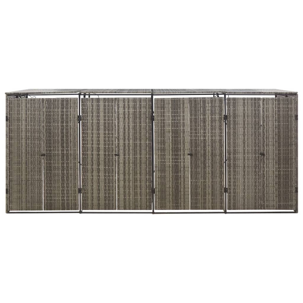 Diese Mülltonnenbox für 4 Tonnen bietet die ideale Lösung, um deine Mülltonne außer Sicht im Garten aufzubewahren. Haltbares Material: Poly Rattan ist ein langlebiges Material mit ausgezeichneter Festigkeit, das unterschiedlichen Wetterbedingungen standhält. Es erfordert auch nur wenig Pflege.Robust: Die pulverbeschichtete Stahlrahmen sorgen für Robustheit und Stabilität.Praktisches Design: Der Deckel der Mülltonnenbox lässt sich öffnen, um einen einfachen Zugang zur Tonne bei der Müllentsorgung zu bieten. Zudem verfügt sie über abschließbare Türen an der Vorderseite, sodass sich die Tonne einfache entnehmen und entleeren lässt. Hinweis:Jedes Produkt wird mit einer Montageanleitung in der Verpackung für einen einfachen Zusammenbau geliefert.Die Mülltonne ist nicht im Lieferumfang enthalten.