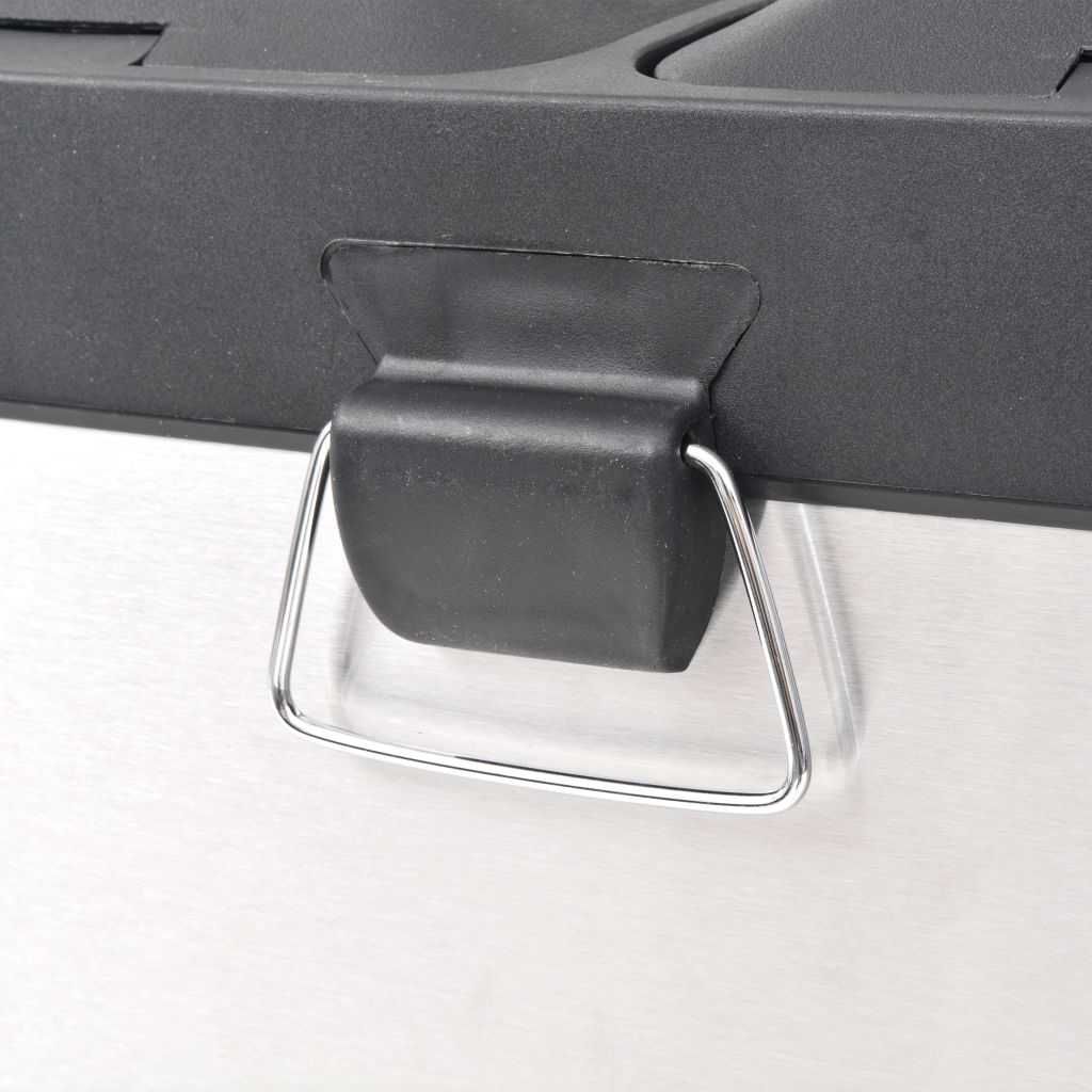 Dieser schicke, praktische Recycling-Treteimer ist ein Must-Have für Ihre Küche, Ihr Wohnzimmer, Ihr Büro usw. Der Mülleimer ist mit 2 herausnehmbaren Inneneimern zum Sortieren des Abfalls ausgestattet. Sie können die Deckel durch die Pedal-Mechanik mühelos öffnen oder schließen. Die Schlitze hinter den Pedalen sind farbcodiert, damit Sie den Abfall auf bequemere Weise sortieren können. Der Mülleimer hat ein Edelstahlgehäuse mit mattem Finish, was ihm einen schicken Look verleiht. Die Inneneimer, Deckel und Boden sind aus strapazierfähigem Polypropylen (PP) gefertigt. Die Soft-Close-Deckel öffnen und schließen sich per Fußpedal geräuschlos. Im geschlossenen Zustand verhindern die Deckel die Verbreitung unangenehmer Gerüche. Jeder Inneneimer verfügt über einen großen Griff und kann leicht herausgenommen werden.
