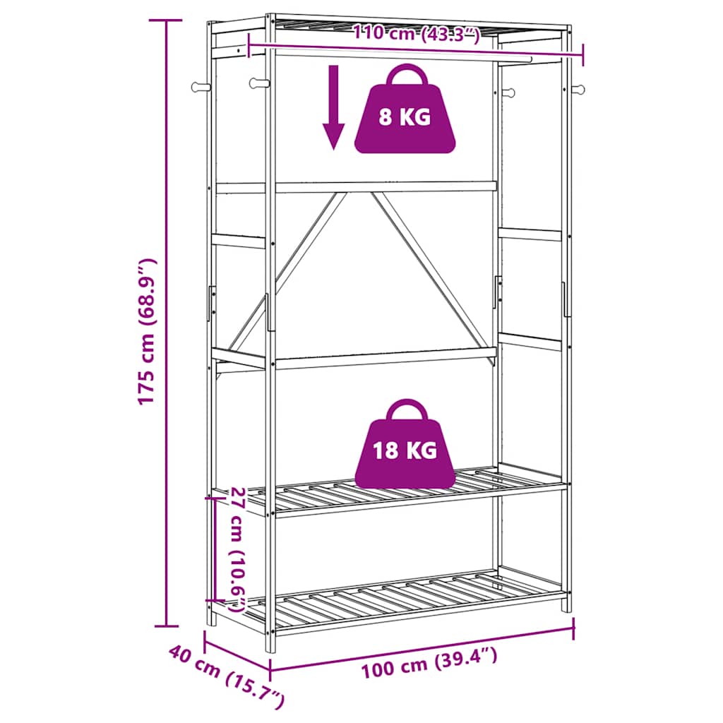 Der Kleiderständer aus Bambus bietet eine natürliche Lösung zur Organisation deines Raums und kombiniert praktisches Design mit robuster Funktionalität. Stabil und langlebig: Bambus ist leicht, wasserbeständig und stark und eignet sich daher hervorragend für verschiedene Anwendungen wie Möbel, Bauwesen, Handwerk und Dekorationsartikel.Reichlich Stauraum: Die Garderobe verfügt über eine Kleiderstange zum Ordnen deiner Kleidung, sodass alles in Reichweite ist. Die Einlegeböden sind ideal für die Aufbewahrung von Kartons und gefalteten Kleidungsstücken, während die untere Ablage Platz für Schuhe bietet. An den seitlichen Haken kannst du deine Handtaschen und Hüte bequem aufhängen.Vielseitig einsetzbar: Der Kleiderständer passt sich an verschiedene Räume an, ob im Badezimmer als Handtuchhalter, im Flur als Garderobenständer oder im Schlafzimmer oder Ankleidezimmer als Kleiderstange, Taschenhalter und mehr.Pflegeleicht: Der Bambus-Wäscheständer lässt sich leicht mit einem feuchten Tuch reinigen und erfordert weniger Pflege.