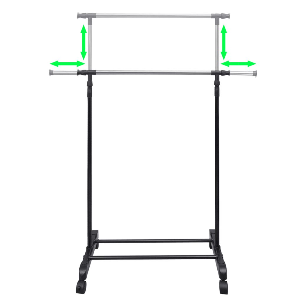 Dieser vielseitig einsetzbare Kleiderständer wird sofort eine praktische und mobile Aufbewahrungslösung für Ihre Kleider bieten. Hergestellt aus hochwertigem Edelstahl, ist der Kleiderständer für jahrelangen Gebrauch ausgelegt. Mit einer Kleiderstange, die bis zu 150 cm ausziehbar sind, ist der Kleiderständer so konzipiert, dass der Trocknungsraum maximiert, wobei die Standfläche minimiert wird. Seine Höhe kann von 108 cm bis 170 cm eingestellt werden. Dank der vier leichtgängigen 360°-Rollen kann der Kleiderständer problemlos umstellt werden. Zwei der Rollen sind mit Bremsen ausgestattet, die für zusätzliche Stabilität sorgen. Darüber hinaus ist der Garderobenständer einfach zusammenzubauen und zu reinigen. Er kann außerdem für die einfache Lagerung auseinandergebaut werden. Dieser mobile Kleiderständer ist leicht, robust, stabil und leicht zu verstauen.