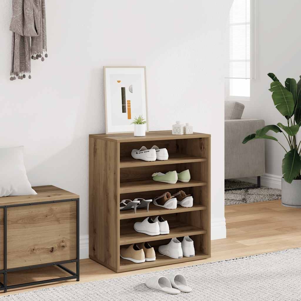 In diesem eleganten Schuhschrank lassen sich Ihre Schuhe ganz ordentlich aufbewahren, um für ein aufgeräumtes Wohnumfeld zu sorgen! Starkes und langlebiges Material: Holzwerkstoff ist ein langlebiges und robustes Material mit einer glatten Oberfläche, das gegen Feuchtigkeit, Verformung und Rissbildung beständig ist, wodurch es eine zuverlässigen Wahl für die Herstellung von Möbeln ist.Viel Stauraum: Das Schuhregal verfügt über 5 Fächer und bietet dadurch reichlich Platz für deine Schuhe. Mit diesem praktischen Schuhregal wirst du dich nie wieder über herumliegende Schuhe ärgern.Praktische Oberplatte: Die robuste Oberplatte eignet sich ideal, um Dekoartikel und Bilderrahmen zur Schau zu stellen oder Sachen wie Schlüssel oder Geldbörsen griffbereit aufzubewahren.Pflegeleicht: Dank seiner glatten Oberfläche lässt sich das Schuhregal mit einem feuchten Tuch leicht reinigen und erfordert wenig Pflege. Achtung:Um ein Umkippen zu vermeiden, sollte dieses Produkt mit der mitgelieferten Wandhalterung gesichert werden.