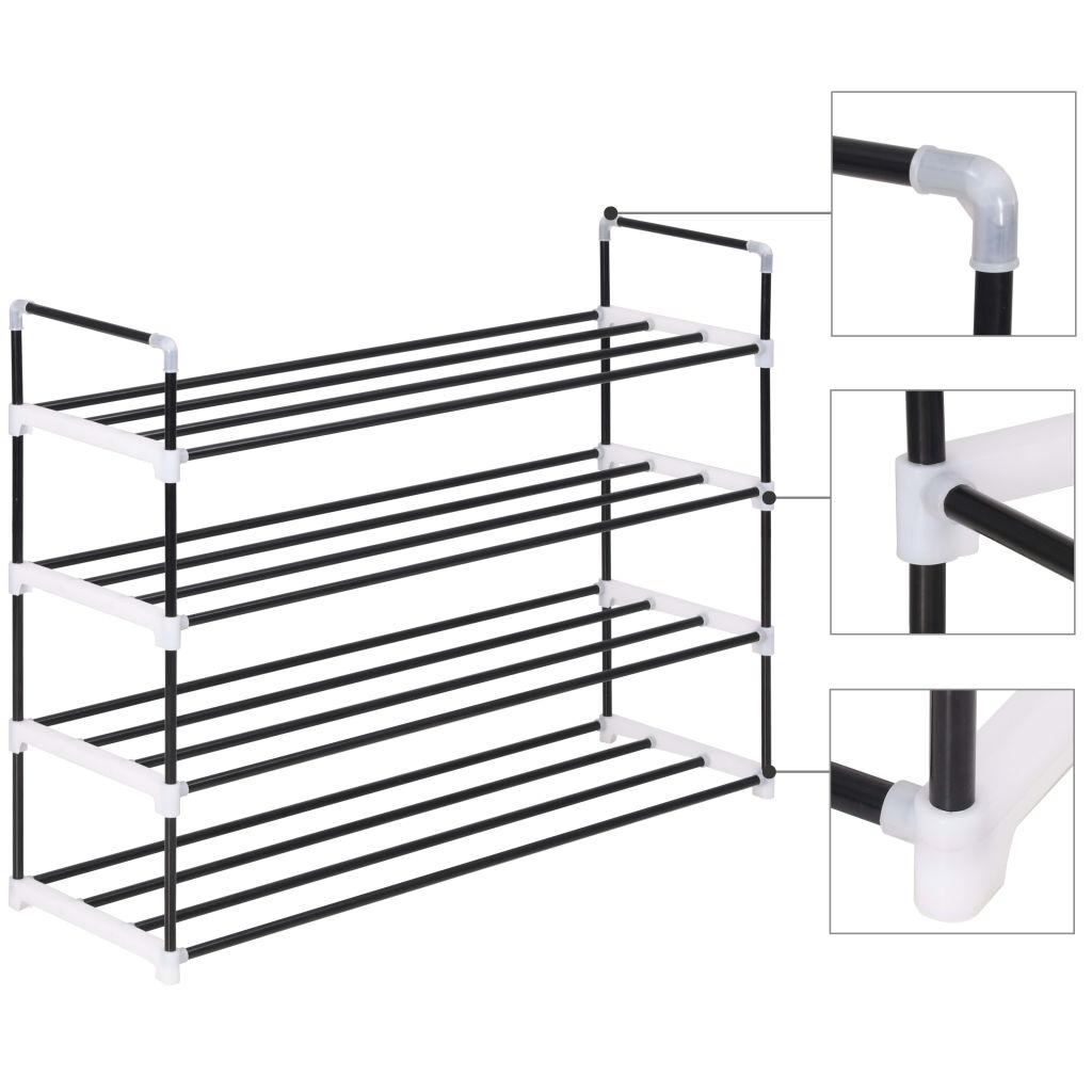 Dieses minimalistische Schuhregal ist eine ideale Aufbewahrungslösung für Ihre Schuhe. Es hat einen röhrenförmigen Metallrahmen, der leicht und dennoch robust ist, so dass das Schuhregal leicht zu bewegen und langlebig ist. Es hat vier großzügige Regale, die genug Platz bieten, um Ihre Schuhe organisiert anzuordnen. Der Zusammenbau ist kinderleicht.