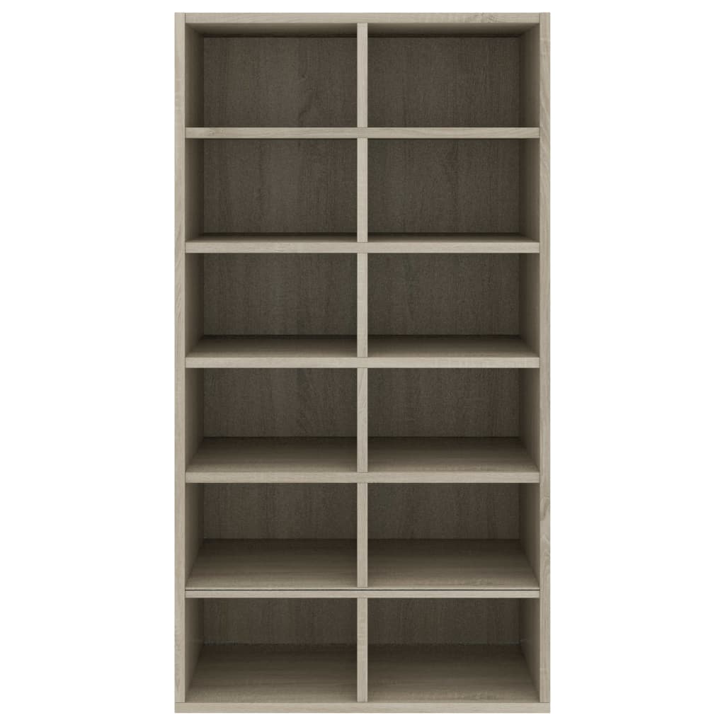 Halten Sie Ihre Schuhe organisiert und immer griffbereit mit diesem Schuhständer! Dieses Schuhregal besteht aus hochwertigem Holzwerkstoff, das langlebig und robust ist. Es hat ein einfaches Design, das sich stilistisch in jeden Wohnraum einfügt. 12 Fächer bieten viel Stauraum, so dass dieses Schuhregal viele Schuhe, Aufbewahrungsboxen, Hobbyutensilien, Sammlerstücke und mehr aufnehmen kann. Wandmontagezubehör und ein Wandanker gegen Umkippen sind im Lieferumfang mit enthalten. Es lässt sich leicht mit einem feuchten Tuch reinigen. Das Schuhregal ist einfach zu montieren.