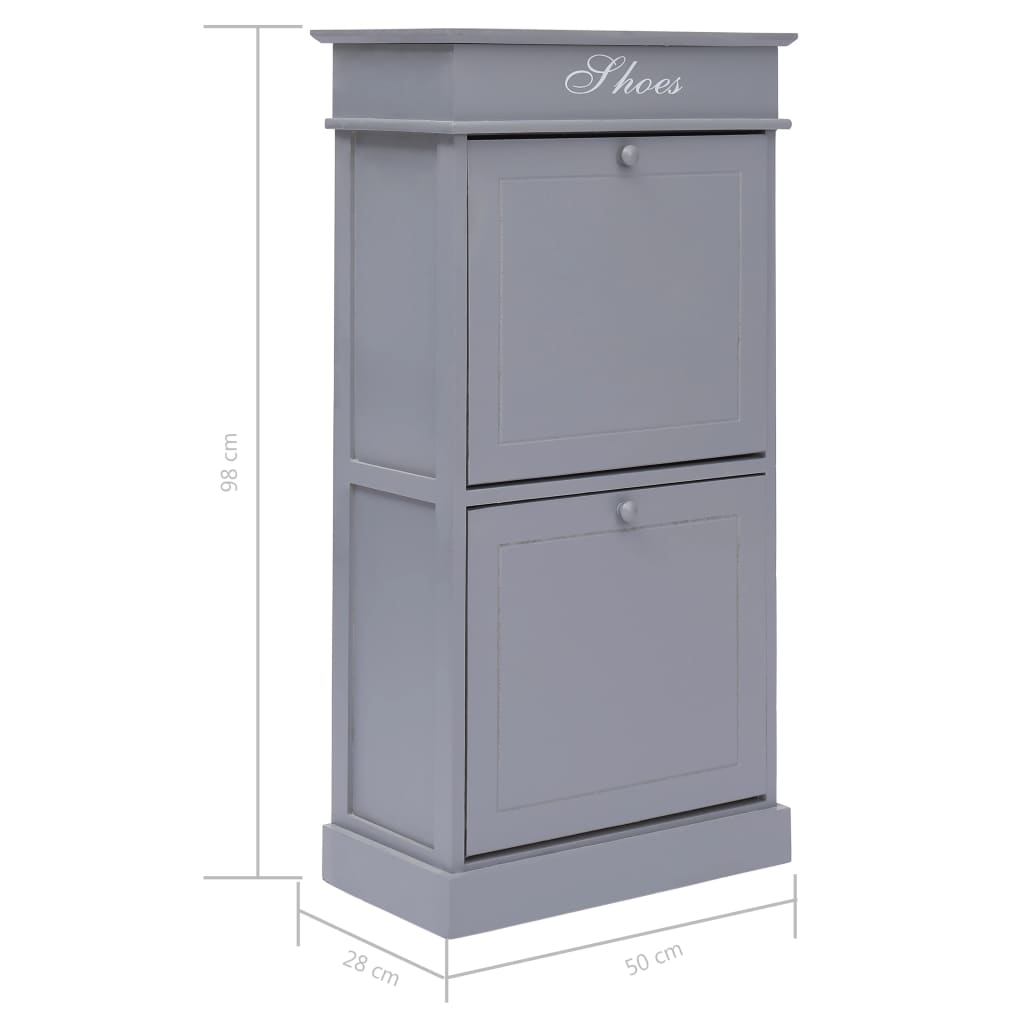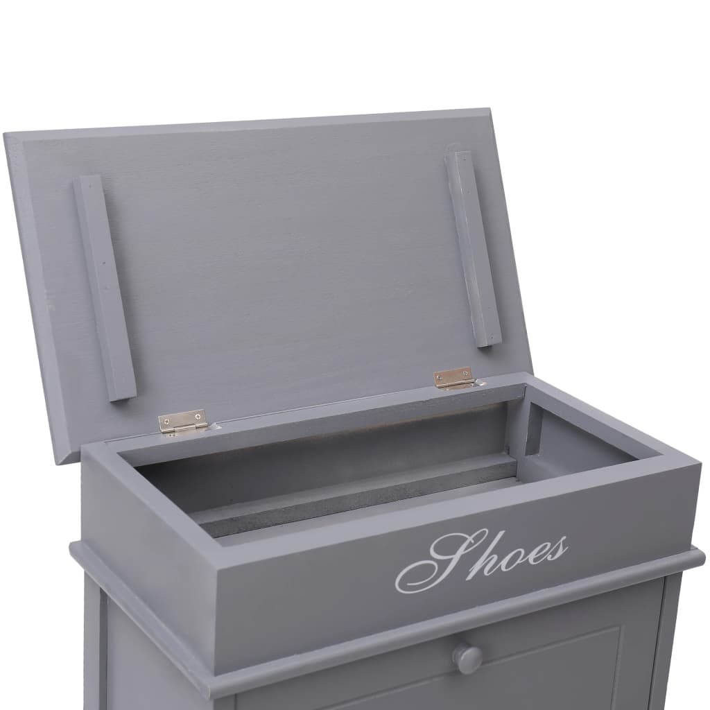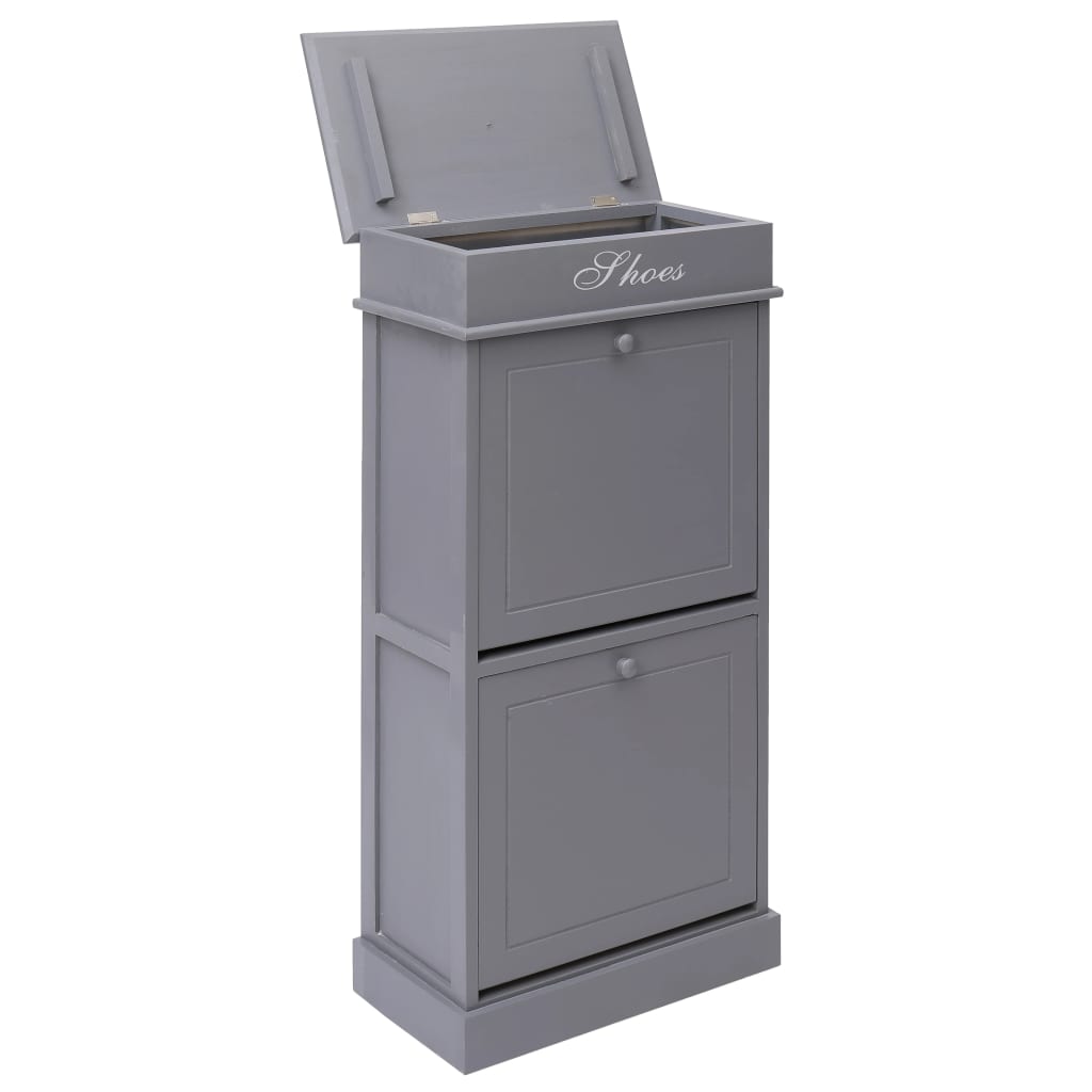 Unser zeitloser Schuhschrank bietet die ideale Lösung zur Aufbewahrung von Schuhen im Schlafzimmer oder Flur. Sie werden sich nicht mehr darüber ärgern müssen, dass Schuhe auf dem Boden verstreut herumliegen. In den 2 großen Kippfächern befinden sich Querstangen, die für eine übersichtliche Aufbewahrung der Schuhe sorgen. So können Sie die Schuhe bequem sehen und ausziehen. Bis zu 10 Paar Schuhe können staubfrei gelagert werden. Darüber hinaus kann die Schrankoberseite geöffnet werden und Sie können das obere Fach zum Aufbewahren von Schuhzubehör wie Schnürsenkeln, Schuhpads und anderen Kleinigkeiten verwenden. Unser Schuhschrank besteht aus Paulownia-Holz und MDF und ist einfach zu montieren.
