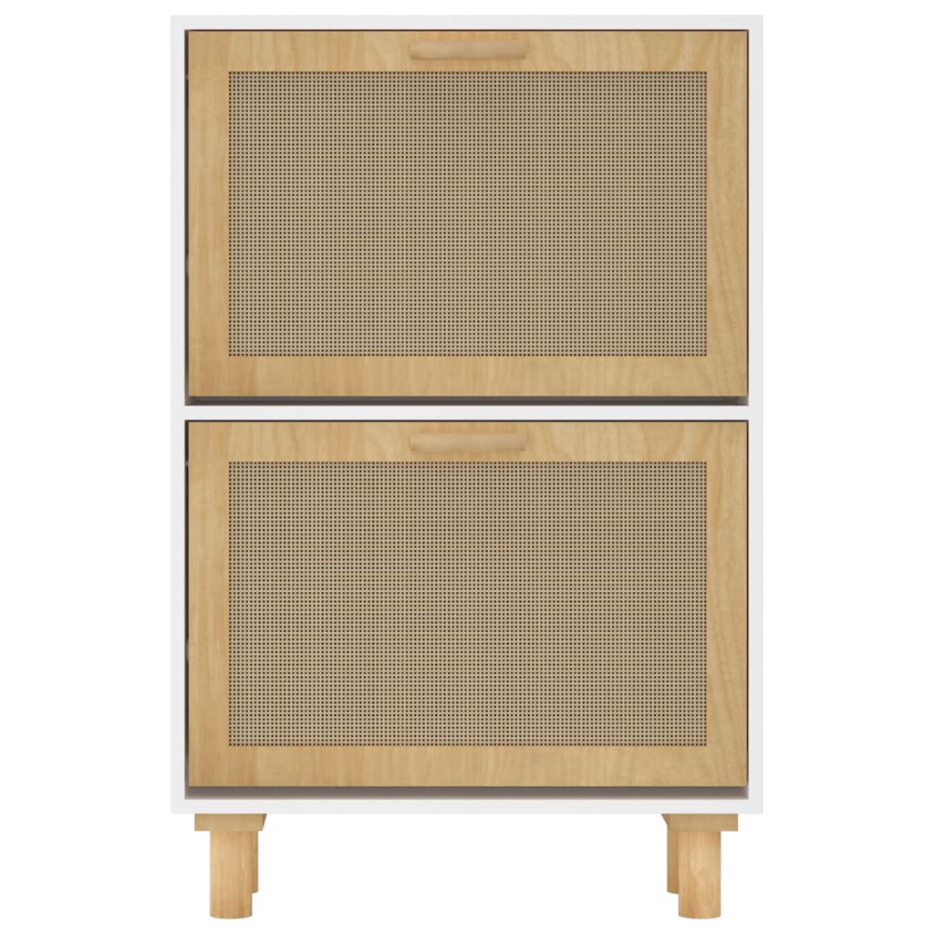 Dieser Schuhschrank im skandinavischen Stil ist eine ausgezeichnete Wahl, um deine Schuhe ordentlich aufzubewahren. Er findet leicht Platz im Eingangsbereich, Flur, Wohnzimmer, Schlafzimmer oder jedem anderen Raum. Langlebiges Material: Holzwerkstoff ist ein Material von außergewöhnlicher Qualität mit glatter Oberfläche, das sich durch Festigkeit, Stabilität und Feuchtigkeitsbeständigkeit auszeichnet.Reichlich Stauraum: Dieser Schuhkipper verfügt über 2 Klappen und bietet reichlich Platz, um deine Schuhe griffbereit und ordentlich zu lagern. Zu seiner ansprechenden Optik trägt auch das natürliche Rattangeflecht an den Klappen.Kippbares Design: Dank der Kippfächer bietet dir dieser leicht zu öffnende und schließende Schuhschrank einfachen Zugriff auf deine Schuhe. Hinweis:Jedes Produkt wird mit einer Montageanleitung in der Verpackung für eine einfache Montage geliefert. Achtung:Um ein Umkippen zu verhindern, muss dieses Produkt mit der mitgelieferten Wandhalterung gesichert werden.