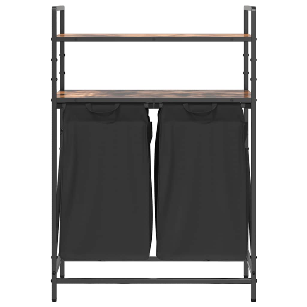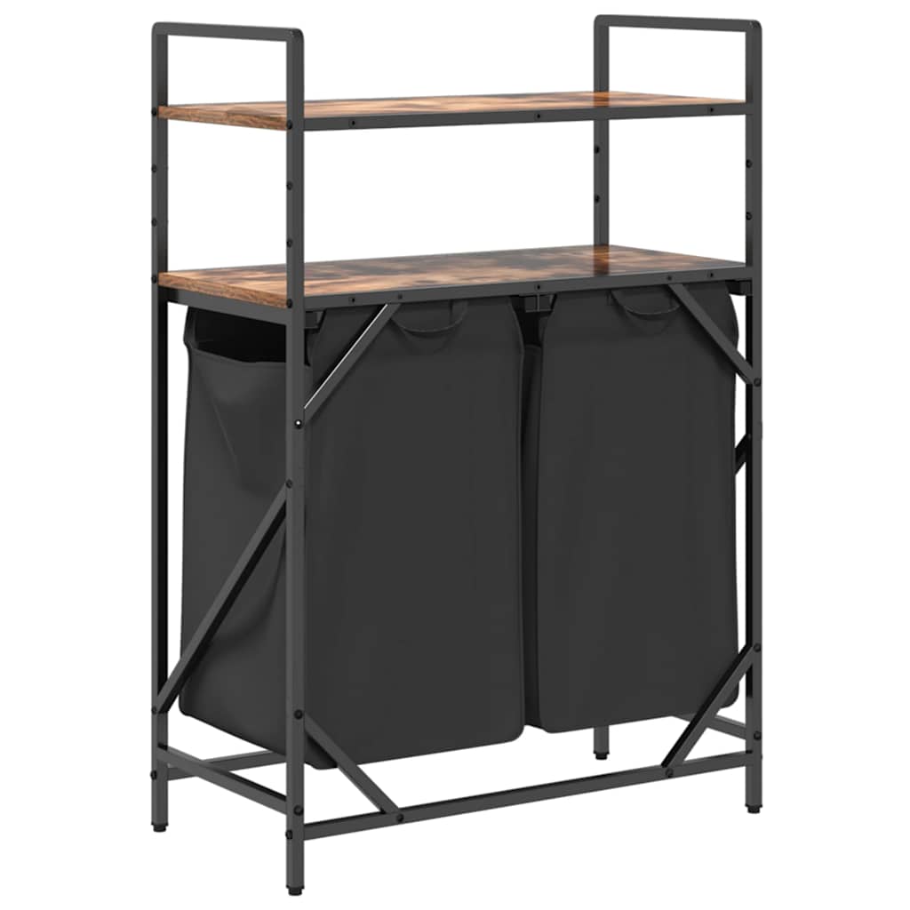 Der Wäschekorb bietet eine geräumige und praktische Aufbewahrungslösung mit herausziehbaren Beuteln, die das Ordnen Ihrer Wäsche mühelos machen. Wäschesortierer: Dieser Organizer bietet Platz für eine großzügige Wäscheladung pro Beutel und hilft dabei, Kleidungsstücke nach Farbe oder Stoffart zu sortieren, einen aufgeräumten Wäschebereich zu erhalten und auch Spielzeug und mehr aufzubewahren.Praktische herausziehbare Wäschebeutel: Die herausnehmbaren Wäschebeutel sind mit ausziehbaren Griffen und Klettverschlüssen zum einfachen Abnehmen und Herausziehen ausgestattet. Die verstärkten Bodenplatten helfen, die Form der Beutel zu erhalten und ein Durchhängen zu verhindern.Robuste und langlebige Struktur: Dieser Wäschekorb kombiniert einen Stahlrahmen mit langlebigem Holzwerkstoff und bietet so hervorragende Festigkeit, Verschleißfestigkeit und Stabilität.Obere Ablagefläche: Der Wäschekorb verfügt über zusätzliche Ablagen und bietet so eine praktische Lösung, um Ihre wichtigsten Dinge griffbereit zu haben. Perfekt zur Aufbewahrung von Toilettenartikeln, Waschmitteln, Weichspülern oder sogar Dekorationsartikeln.Vielseitig und multifunktional: Dieses Regal ist perfekt für die Waschküche, das Badezimmer oder das Schlafzimmer geeignet und verbindet nahtlos Funktionalität mit Stil. So bleibt Ihr Zuhause ordentlich und organisiert und passt gleichzeitig zu verschiedenen Einrichtungsstilen. Warnung:Um ein Umkippen zu verhindern, muss dieses Produkt mit der mitgelieferten Wandhalterung verwendet werden.
