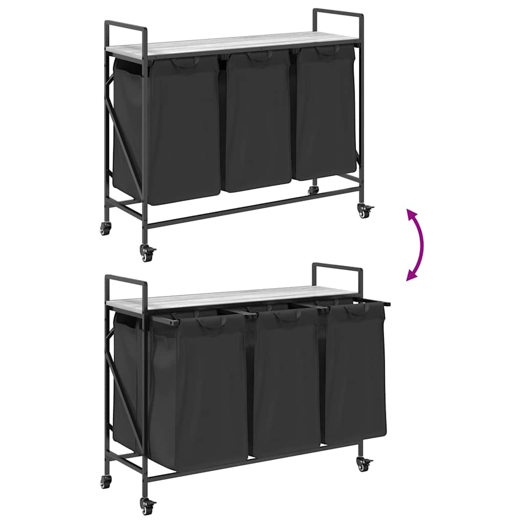 Der Wäschekorb bietet eine geräumige und praktische Aufbewahrungslösung mit ausziehbaren Wäschesäcken und Rollen, die das Ordnen und Transportieren Ihrer Wäsche mühelos machen. Wäschesortierer: Dieser Wäschesortierer bietet Platz für eine großzügige Wäscheladung pro Wäschesack und hilft, Kleidungsstücke nach Farbe oder Stoffart zu sortieren, für einen aufgeräumten Wäschebereich zu sorgen und auch Spielzeug und mehr aufzubewahren.Praktische ausziehbare Wäschesäcke: Die herausnehmbaren Wäschesäcke sind mit ausziehbaren Griffen und Klettverschlüssen zum einfachen Abnehmen und Herausziehen ausgestattet. Die verstärkten Bodenplatten helfen, die Form der Säcke zu erhalten und ein Durchhängen zu verhindern.Robuste und langlebige Struktur: Dieser Wäschekorb kombiniert einen Stahlrahmen mit langlebigem Holzwerkstoff und bietet so hervorragende Festigkeit, Verschleißfestigkeit und Stabilität.Obere Ablagefläche: Der Wäschekorb verfügt über ein oberes Regal und bietet so eine praktische Lösung, um Ihre wichtigsten Dinge griffbereit zu haben. Perfekt zur Aufbewahrung von Toilettenartikeln, Waschmitteln, Weichspülern oder sogar Dekorationsartikeln.Mühelose Mobilität: Dank robuster Räder lässt sich dieser Wäschekorb problemlos von Raum zu Raum rollen. Zwei der Räder sind mit Bremsen ausgestattet, sodass der Korb, sobald Sie ihn an der gewünschten Stelle platziert haben, sicher an seinem Platz bleibt und nicht wegrollt.