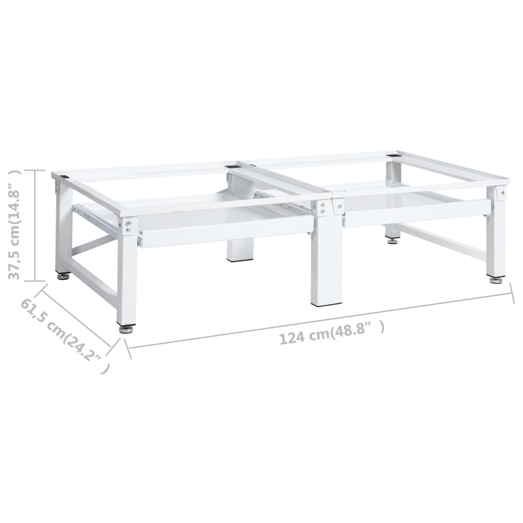 Dieser doppelte Sockel kann verwendet werden, um Wasch- und Trockenmaschinen vom Boden fernzuhalten und sie auf eine geeignete Arbeitshöhe zu heben, damit Sie sich nicht zu sehr bücken müssen, um Wäsche hineinzulegen oder herauszunehmen. Das doppelte Untergestell ist aus starkem Stahl gefertigt, was es sehr stabil macht. Dabei kann jeder Teil eine Waschmaschine oder einen Trockner mit einem Gewicht von bis zu 100 kg tragen. Dank rutschfester Polster stehen Wasch- und Trockenmaschinen stabil. Da die Füße höhenverstellbar sind, kann das Podest zum Ausgleich von Bodenunebenheiten angepasst werden. Es verfügt außerdem über zwei praktische Ausziehablagen, die für zusätzlichen Stauraum sorgen.