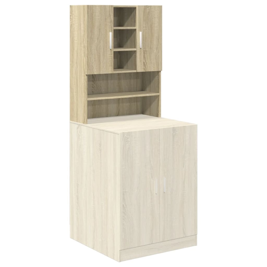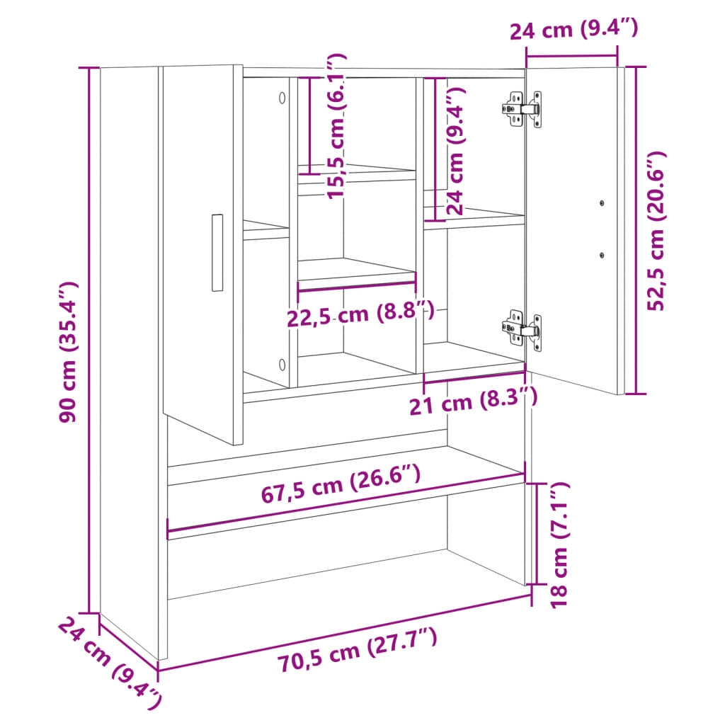 Mit diesem Waschmaschinenschrank kannst du zusätzlichen Stauraum im Bad oder Waschraum schaffen. Langlebiges Material: Holzwerkstoff ist ein Material außergewöhnlicher Qualität mit glatter Oberfläche. Er zeichnet sich durch Festigkeit, Stabilität und Feuchtigkeitsbeständigkeit aus.Viel Stauraum: Der Schrank mit Türen bietet viel Platz, um verschiedene Alltagssachen gut organisiert und in Reichweite aufzubewahren.Aufgeräumter Look: Die klaren Linien und das schlichte Design fügen sich perfekt in jedes Badezimmer ein.Pflegeleicht: Dank seiner glatten Oberfläche lässt sich der Wandschrank mit einem feuchten Tuch leicht reinigen und erfordert wenig Pflege.Benutzerfreundlich: Der Schrank ist mit Griffen versehen, die das Öffnen und Schließen des Schranks erleichtern und gleichzeitig zu seiner ansprechenden Optik beitragen. Achtung:Um ein Umkippen zu vermeiden, sollte dieses Produkt mit der mitgelieferten Wandhalterung gesichert werden. Gut zu wissen:Geliefert wird nur die Waschmaschinenregal.