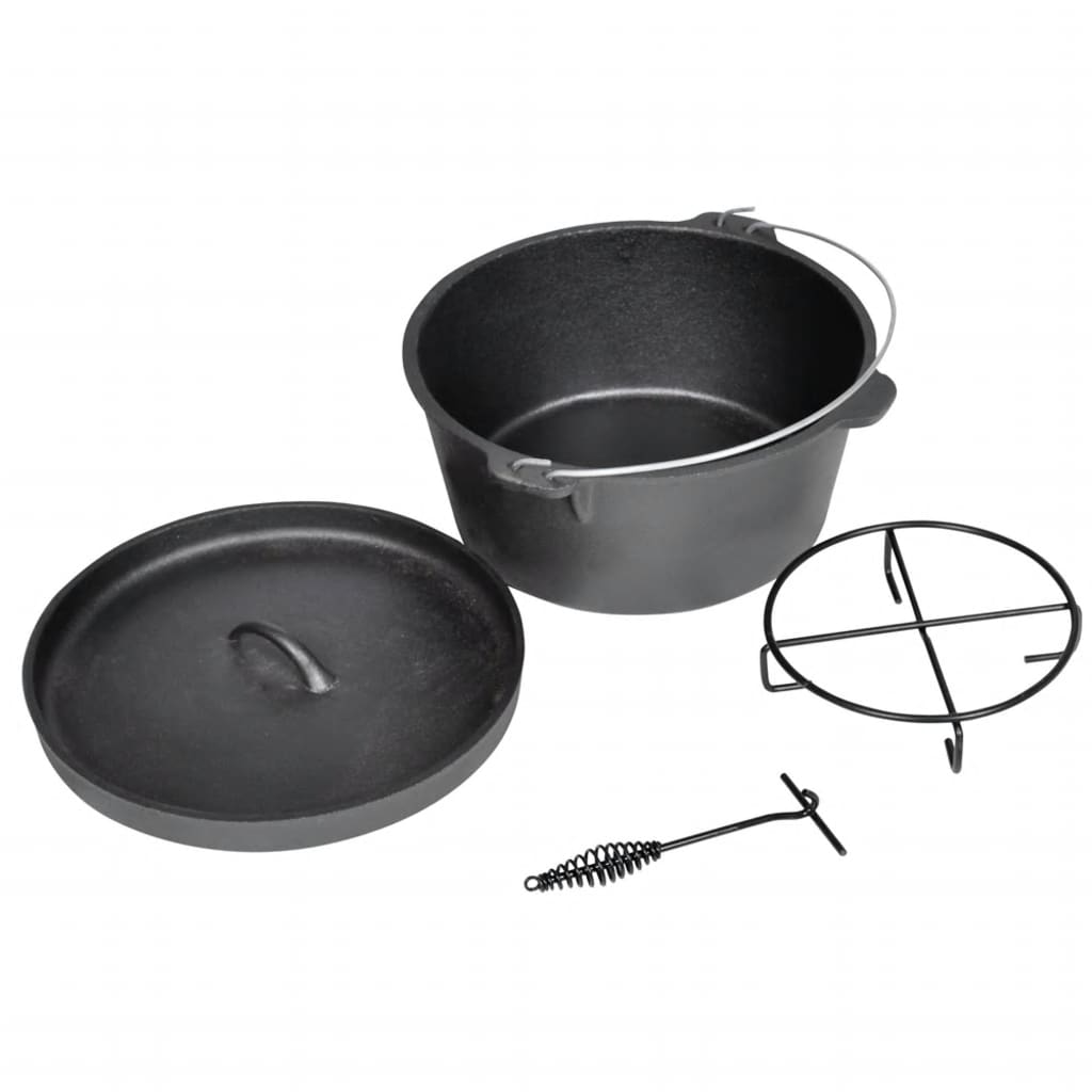 Der Dutch Oven ist ein ideales Modell für Einsteiger und Profis. Das Modell wird komplett mit schwarzer Tasche für den Transport geliefert. Mit diesem Dutch Oven lassen sich Aufläufe, Eintöpfe und kleinere Braten zubereiten. Der Dutchoven wird komplett mit einem Deckel mit erhöhtem Rand geliefert. Zusätzlich erhalten Sie gratis zum Schmortopf einen Deckelheber und Ständer. Der Gusseisen Bräter gestaltet sich als idealer Helfer bei Camping Ausflügen. Mit der praktischen Tragetasche können Sie den Dutch Ofen ganz einfach mitnehmen.