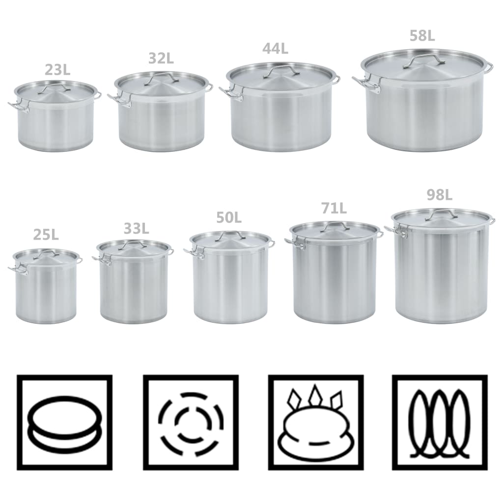 Aus erstklassigem Edelstahl gefertigt, bietet dieser Kochtopf ausgezeichnete Leistung in Kombination mit Langlebigkeit sowie Qualität und sollte daher aus deiner Küche nicht fehlen! Der Topf kann auch in professionellen Küchen, Hotels und Restaurants verwendet werden. Dieser Kochtopf eignet sich hervorragend für Suppen, Eintöpfe und Soßen und ist für viele Aufgaben in der Küche geeignet. Dank des hochwertigen Edelstahls ist er für Induktions- und Gasherde geeignet. Außerdem können der gerollte Rand und die Griffe Verletzungen durch Verbrühung vermeiden. Dieser Suppentopf wird zu einem tollen Helfer in jeder Küche!