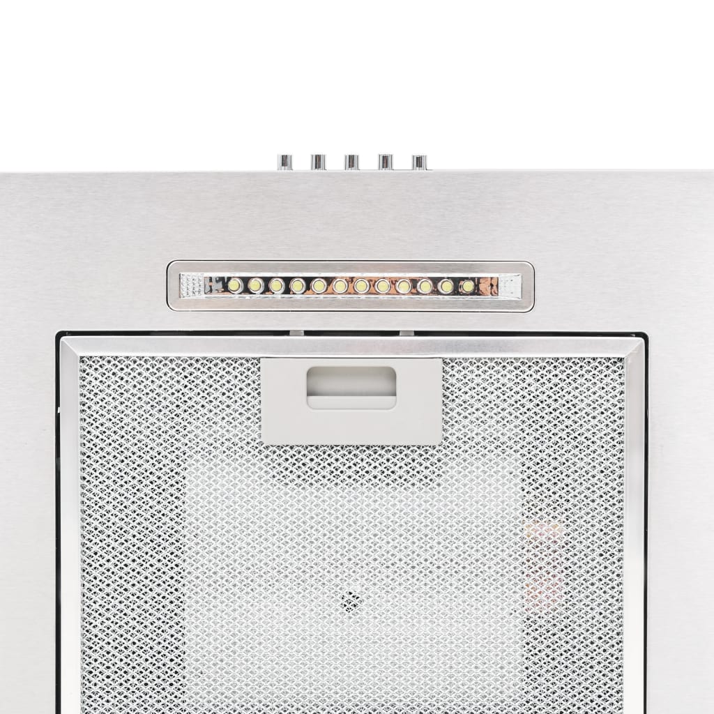 Unsere geräuscharme und leistungsstarke wandmontierte Dunstabzugshaube eignet sich ideal dazu, Rauch, Fett, Feuchtigkeit und sogar Wärme aus Ihrer Küche effektiv abzuführen. Ihr Edelstahlgehäuse wird in Kombination mit einer schlanken, geschwungenen, gehärteten Glashaube ausgeliefert, was Ihrer Küche ein stilvolles und modernes Aussehen verleiht. Der Rauchfang ist mit einem 3-schichtigen, waschbaren Aluminium-Fettfilter ausgestattet, um das Innere der Dunstabzugshaube und die Abluftleitung vor Fett zu schützen. Die eingebauten LED-Leuchten sorgen für eine hervorragende Ausleuchtung, erleichtern das Kochen und schaffen ein schönes Ambiente in Ihrer Küche. Die Dunstabzugshaube verfügt über 3 variable Geschwindigkeiten, sodass Sie die Absaugleistung vollständig kontrollieren können, und einen Kohlefilter, der dabei hilft, die Luft zu reinigen und die gereinigte Luft wieder in die Küche abzuführen, während die externe Abluft die Kochgerüche mit Hilfe des mitgelieferten Abluftrohrs nach außen ableitet. Die Montage ist einfach.