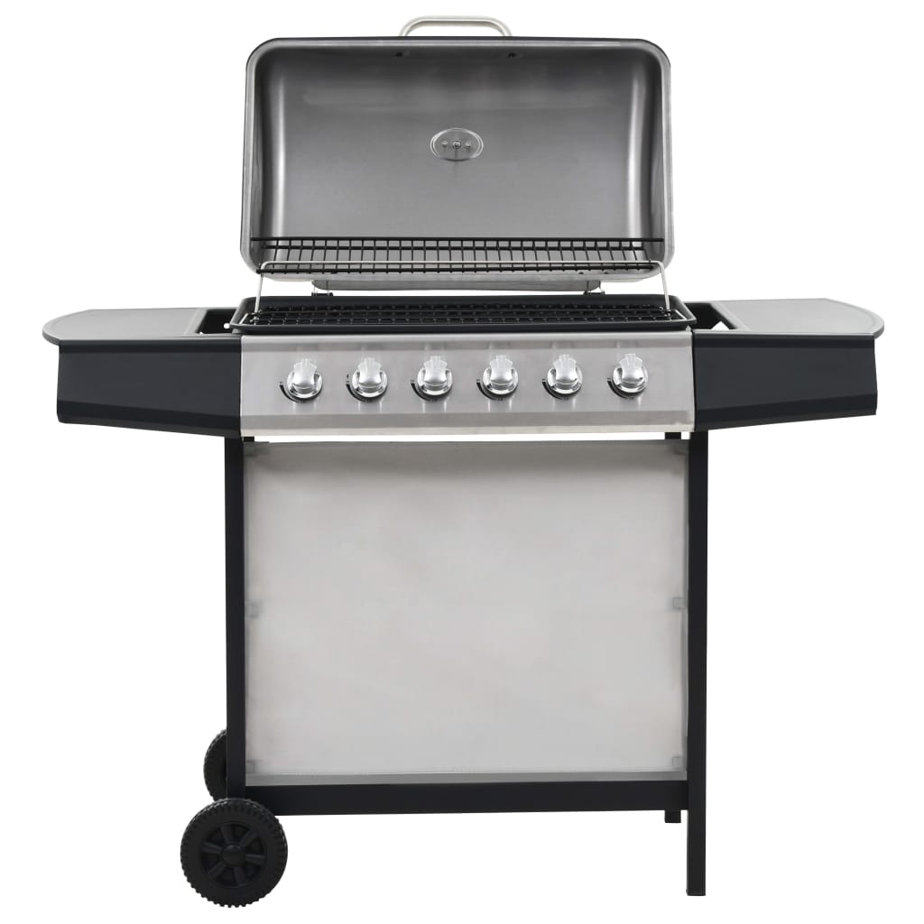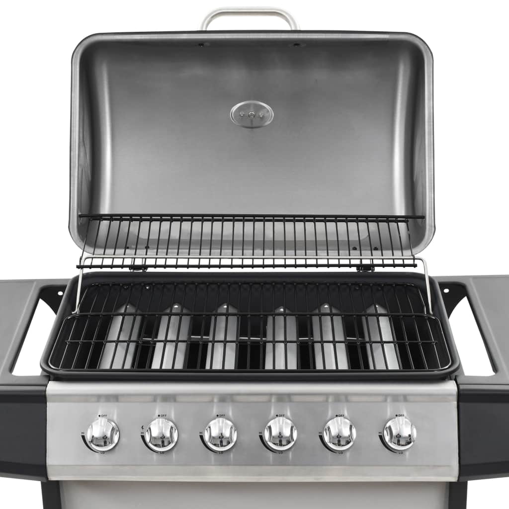 Dieser Gasgrill verfügt über 6 große Kochzonen, was ihn zu einer idealen Wahl für ein Festmahl im Freien mit Familie und Freunden macht. Er verwandelt dich in einen echten Grillmeister und deinen Hinterhof in eine zweite Küche! Der Gasgrill zeichnet sich durch ein stilvolles und praktisches Design aus. Er verfügt über 6 Flammen und eine robuste Haube mit eingebautem Thermometer, das die Grilltemperatur genau anzeigt. Die seitlichen Ablagen bieten zusätzlichen Platz für die Zubereitung von Saucen und Lieblingsbeilagen. Im Lieferumfang ist auch eine abnehmbare Fettauffangwanne enthalten, die sich ganz einfach reinigen lässt. Aus strapazierfähigen Materialien gefertigt, ist der Grill auf eine lange Lebensdauer ausgelegt. Der Unterschrank bietet reichlich Stauraum für Grillutensilien. Dank der 2 robusten Rollen lässt sich der Grill auch mühelos umher verschieben. Zum Anschluss des Grills an eine Gasflasche sind ein Gasschlauch und ein Druckregler erforderlich, die nicht im Lieferumfang enthalten sind.