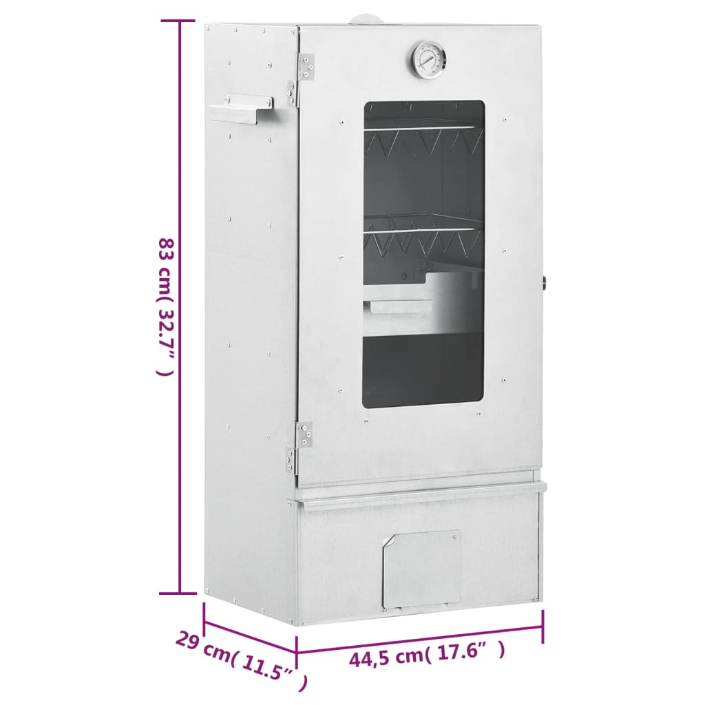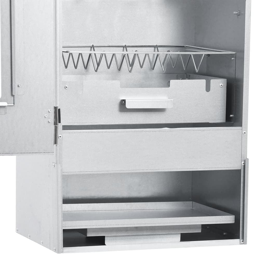 Mit diesem multifunktionalen Räucherofen mit Tisch kannst du ein Festmahl zubereiten und eine gemütliche Zeit im Freien mit deiner Familie genießen! Langlebiges Material: Stahl ist ein außergewöhnlich hartes und starkes Material. Er bietet Robustheit und Stabilität. Die Verzinkung bietet einen besseren Schutz gegen Rost und ist für Produkte geeignet, die im Freien verwendet werden.Viel Platz zum Räuchern: Der Outdoor-Smoker bietet viel Platz zum Räuchern von Fleisch, Fisch, Würstchen und mehr. Die mitgelieferten S-förmigen Haken und Roste erleichtern die Zubereitung der Speisen.Mit Thermometer: Der Räucherofen ist mit einem Thermometer ausgestattet, um die Kammertemperatur zu überprüfen. Dank des Glasfensters kannst du zudem das Grillgut im Inneren im Auge behalten, um die besten Grillergebnisse zu erzielen.Verstellbar: Du kannst die Höhe der Beine über die schwarzen Endkappen verstellen, was die Stabilität des Arbeitstisches selbst auf unebenem Untergrund gewährleistet.Ablagefläche: Der Tisch besitzt 2 offene Ablagen, auf denen du Mehl, Zucker, Rührschüsseln, Schneidebretter und andere Grillutensilien gut organisiert und in Reichweite aufbewahren kannst. Die robuste Tischplatte bietet einen guten Halt, sodass sich der Zubereitungstisch auch für deinen Räucherofen eignet. Achtung:Der Grill darf nicht in geschlossenen und/oder bewohnbaren Bereichen wie Häusern, Zelten, Wohnwagen, Wohnmobilen und Booten verwendet werden. Ansonsten besteht die Gefahr einer Kohlenmonoxidvergiftung, die zum Tod führen kann.