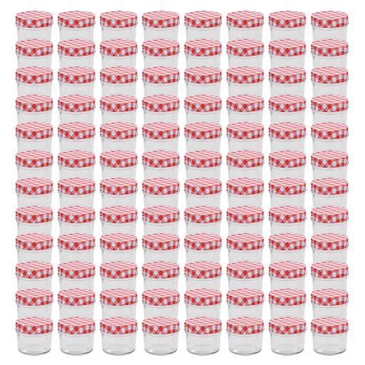 Die Marmeladengläser haben ein Fassungsvermögen von bis zu 110 ml. Sie stellen eine ideale Lösung für die Aufbewahrung von Chutney, Marmeladen, Essiggurken, Saucen, Konfitüren usw. dar. Diese Marmeladengläser aus transparentem Glas haben ein einfaches und klares Aussehen und ermöglichen eine einfache Überwachung und Identifizierung. Der weite Mund sorgt dafür, dass Sie Marmeladen einfach und schnell hineinlegen bzw. herausnehmen können. Darüber hinaus sind die Glasbehälter mit einem rot-weißen Deckel gut verschlossen, sodass Ihre Konfitüren länger frisch bleiben. Die Lieferung umfasst 96 Einmachgläser.