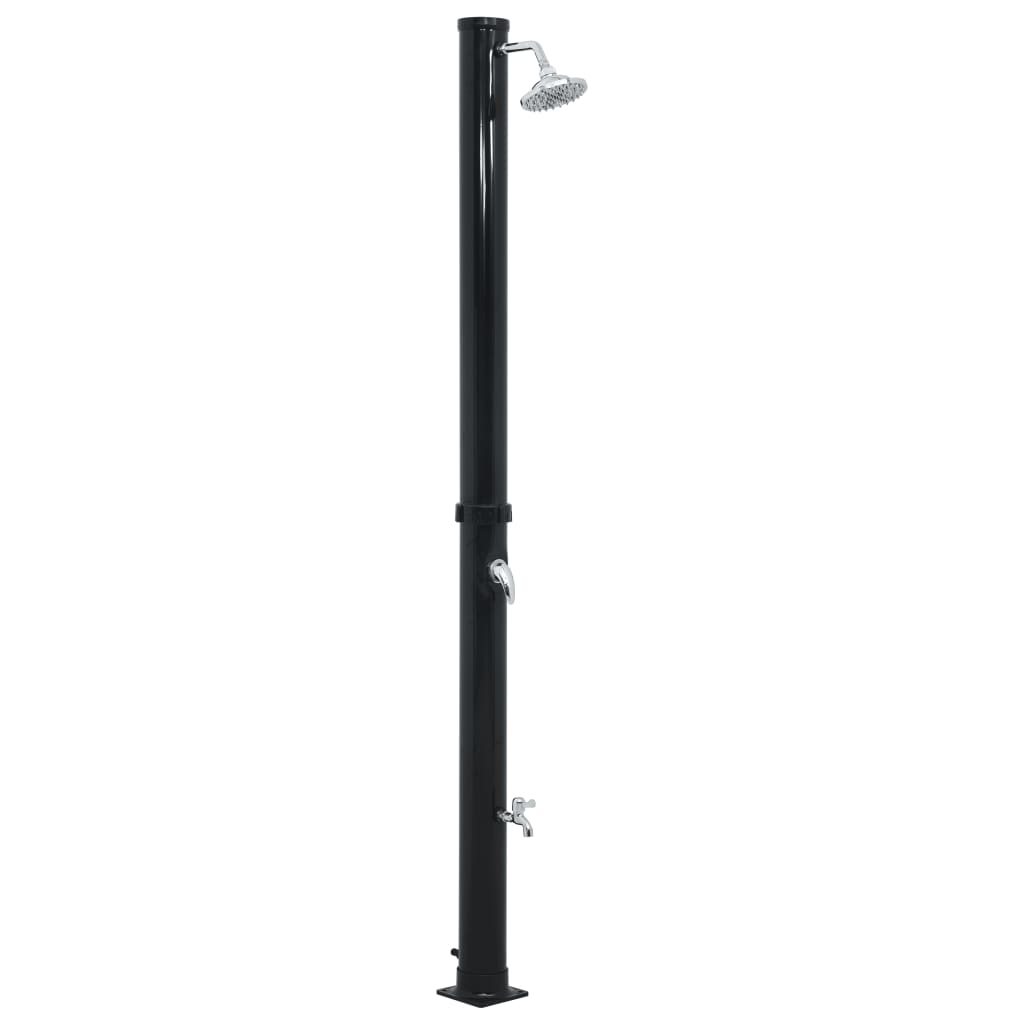 Genieße eine warme Dusche am Pool oder im Garten mit dieser praktischen Solar-Dusche! Das Wasser wird über die Solarenergie erwärmt. Die Gartendusche ist er mit einem 20-Liter-Behälter ausgestattet. Da keine Heizgeräte erforderlich sind, ist die Solardusche energiesparend. Diese Dusche ist aus PVC gefertigt und daher auf eine lange Lebensdauer ausgelegt. Sie enthält keine schädlichen chemischen Bestandteile. Die schwarze Säule trägt zur schnellen Aufnahme der Sonnenenergie bei. Das Wasser kann auf bis zu 60 °C erwärmt werden. Die Gartendusche ist mit einem praktischen Einstellknopf ausgestattet, mit der du die Temperatur des Wassers ganz nach Belieben einstellen kannst. Zudem lässt sich die Pool-Dusche an jeden Standard-Gartenschlauch anschließen, ohne zusätzliche Leitungen zu erfordern. Das Produkt ist einfach zu montieren. Hinweis: Befestigungsschrauben sind im Lieferumfang enthalten.