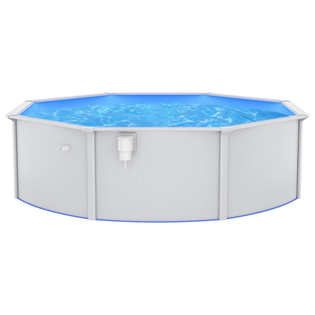 Badespaß für Groß und Klein ist in Ihrem Hinterhof mit diesem Aufstellpool garantiert! Der Pool verfügt über Stahlwände und ist mit strapazierfähigen, winterfesten PVC-Materialien ausgekleidet, die für zusätzliche Festigkeit und Haltbarkeit sorgen. Darüber hinaus verleihen der weiße Rahmen und die blaue Einlage jedem Garten einen Hauch von Schönheit. Der Aufstellpool lässt sich schnell und einfach einrichten. Der mitgelieferte Skimmer bietet eine hervorragende Skimming-Funktion, die Ablagerungen effizienter und vollständiger entfernt. Holen Sie sich den Pool nach Hause und freuen Sie sich über endloses Sommervergnügen mit Familie und Freunden! Wir empfehlen Ihnen, diesen Pool zusammen mit unserer Pumpe und Leiter zu verwenden. Bitte beachten Sie jedoch, dass Pumpe und Leiter nicht im Lieferumfang enthalten sind.