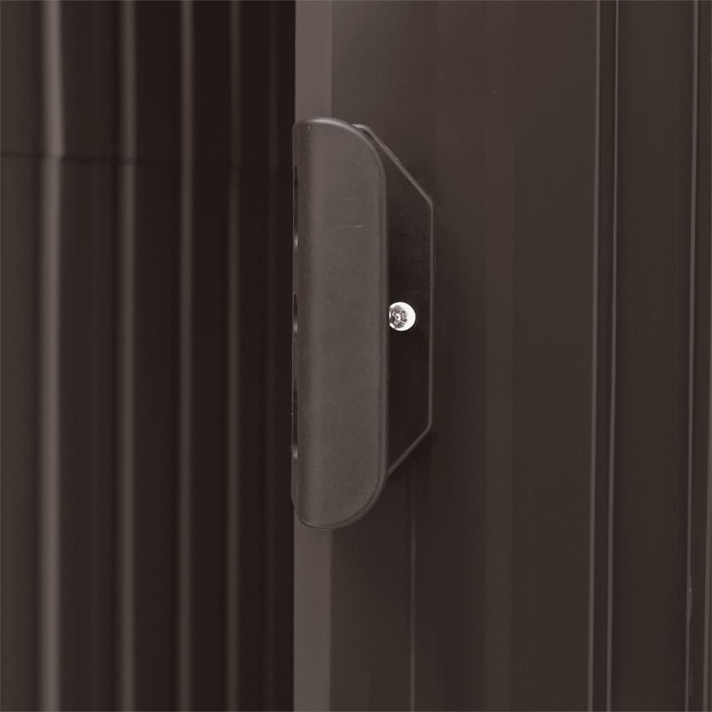 Dieser Garten-Lagerschuppen mit Regal ist ideal für die Unterbringung einer Vielzahl von Werkzeugen, Gartenmöbeln und Gartengeräten. Der Geräteschuppen bietet nicht nur Schutz vor Schmutz und Staub, sondern auch vor Wind und Wetter. Dieses Gartenhaus besteht aus verzinktem Eisen und ist daher stabil und pflegeleicht. Der Gartenschuppen hat vorne und hinten Lüftungsschlitze, die für eine hervorragende Belüftung sorgen. Die einzelne Schiebetür mit Kunststoff-Türgriff vorne ermöglicht einen einfachen Ein- und Ausstieg. Dieser Gartenschuppen ist auch einfach zu montieren.