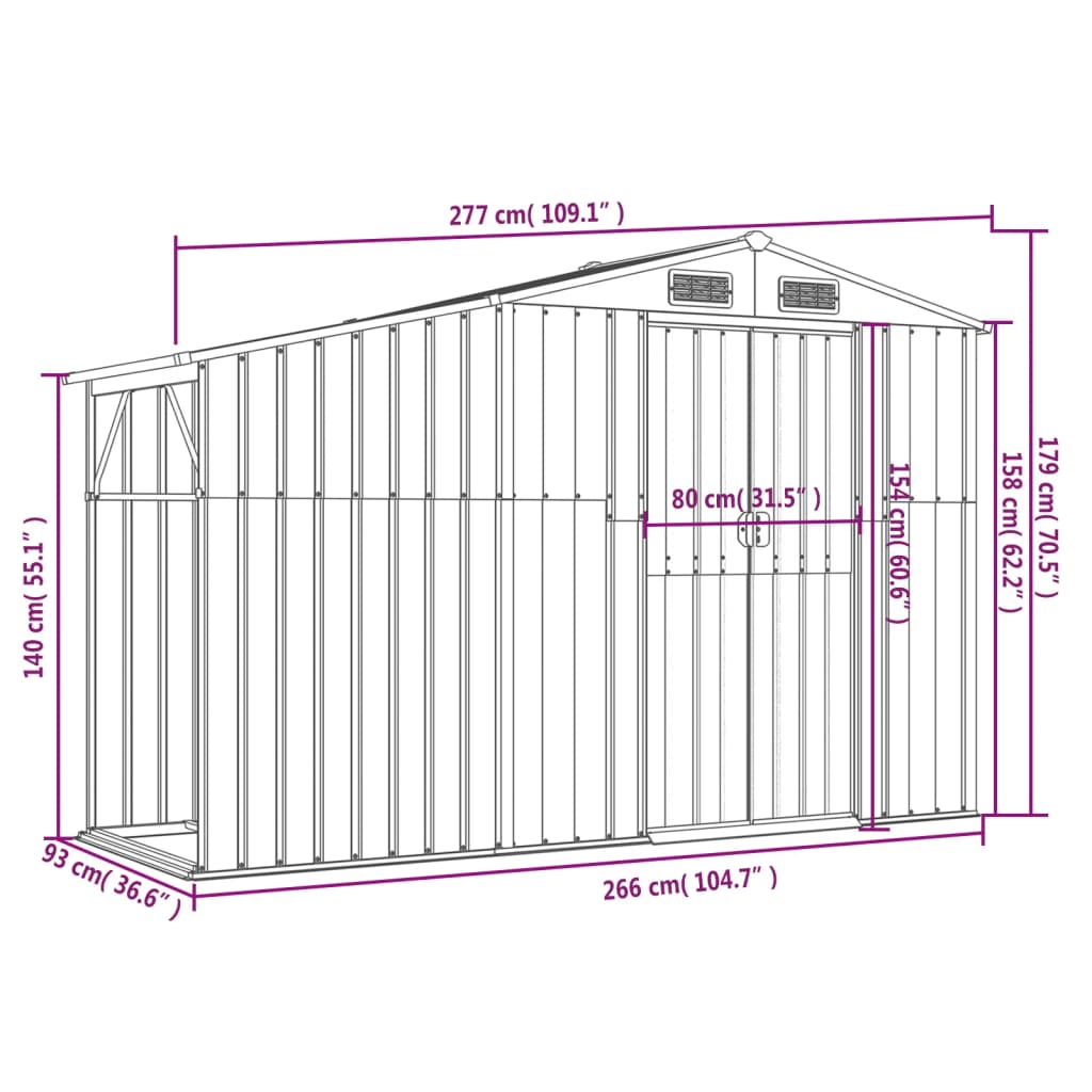 Schaffe zusätzlichen Stauraum im Freien und schütze deine Werkzeuge mit diesem multifunktionalen Gartenhaus. Robustes Material: Stahl ist ein außergewöhnlich hartes und starkes Material. Er bietet Robustheit und Stabilität. Die Verzinkung bietet einen besseren Schutz vor Korrosion und eignet sich für Produkte, die im Freien und in rauen Umgebungen verwendet werden. Aus verzinktem Stahl gefertigt, ist das Gerätehaus robust und für den Einsatz im Freien geeignet.Reichlich Stauraum: Dieser Metallschuppen, der aus einem Brennholzständer und einem großen Gartenhaus besteht, bietet reichlich Platz für die ordentliche Aufbewahrung deiner Gartengeräte.Bequeme Griffe: Das Gerätehaus ist mit Griffen ausgestattet, die das Betreten und Verlassen des Geräteschuppens erleichtern.Gute Belüftung: Der Lagerschuppen ist mit 2 Lüftungsöffnungen ausgestattet, die für eine gute Belüftung sorgen, um die Ansammlung von Feuchtigkeit und unangenehme Gerüche im Haus zu verhindern.Schräges Dach: Das Regenwasser läuft von selbst vom Schrägdach ab.