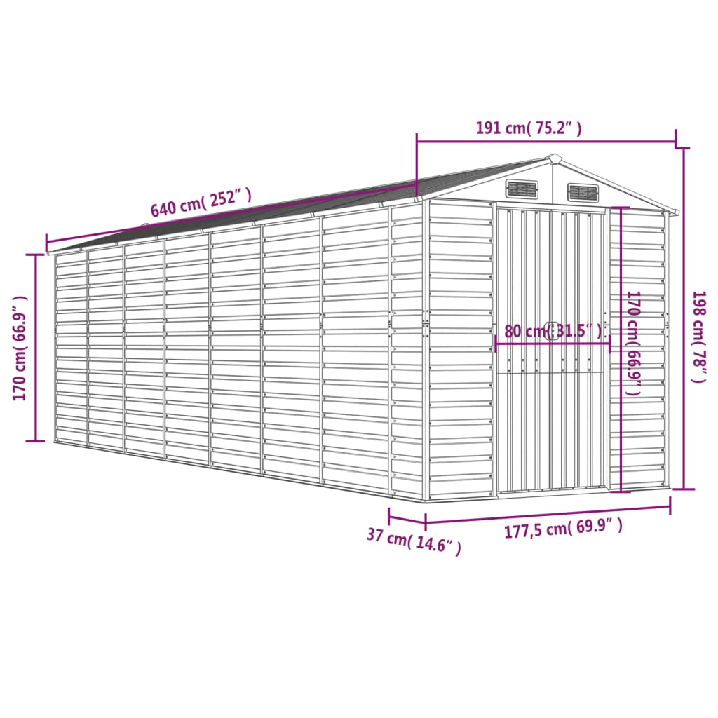 Schaffe zusätzlichen Stauraum im Freien und schütze deine Werkzeuge mit diesem multifunktionalen Gartenhaus. Robustes Material: Der Geräteschuppen besteht aus verzinktem Stahl, der rostfrei und auf eine lange Lebensdauer ausgelegt ist. Stahl ist ein außergewöhnlich hartes und starkes Material. Er bietet Robustheit und Stabilität. Die Verzinkung bietet einen besseren Schutz gegen Korrosion und eignet sich für Produkte, die im Freien und in rauen Umgebungen eingesetzt werden.Reichlich Stauraum: Dieser Metallschuppen bietet reichlich Platz, um Brennholz, Gartengeräte, Möbel, Ausrüstung und vieles mehr zu lagern.Bequeme Griffe: Die Tür des Gerätehauses ist mit Griffen versehen, die den Zugang erleichtern.Gute Belüftung: Das Gartenhaus ist mit 4 Lüftungsöffnungen ausgestattet, die für eine gute Belüftung sorgen, um die Ansammlung von Feuchtigkeit und unangenehme Gerüche im Haus zu verhindern.Schrägdach: Das Schrägdach sorgt für einen ungehinderten Wasserabfluss.