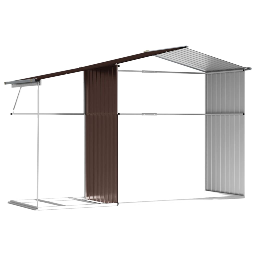 Schaffe zusätzlichen Stauraum im Freien und schütze deine Werkzeuge mit diesem multifunktionalen Gartenhaus. Robustes Material: Der Geräteschuppen besteht aus verzinktem Stahl, der rostfrei und auf eine lange Lebensdauer ausgelegt ist. Stahl ist ein außergewöhnlich hartes und starkes Material. Er bietet Robustheit und Stabilität. Die Verzinkung bietet einen besseren Schutz gegen Korrosion und eignet sich für Produkte, die im Freien und in rauen Umgebungen eingesetzt werden.Reichlich Stauraum: Dieses Metallhaus mit Brennholzunterstand bietet reichlich Platz, um Brennholz, Gartengeräte, Möbel, Ausrüstung und vieles mehr zu lagern.Bequeme Griffe: Die Tür des Gerätehauses ist mit Griffen versehen, die den Zugang erleichtern.Gute Belüftung: Das Gartenhaus ist mit 4 Lüftungsöffnungen ausgestattet, die für eine gute Belüftung sorgen, um die Ansammlung von Feuchtigkeit und unangenehme Gerüche im Haus zu verhindern.Schrägdach: Das Schrägdach sorgt für einen ungehinderten Wasserabfluss.