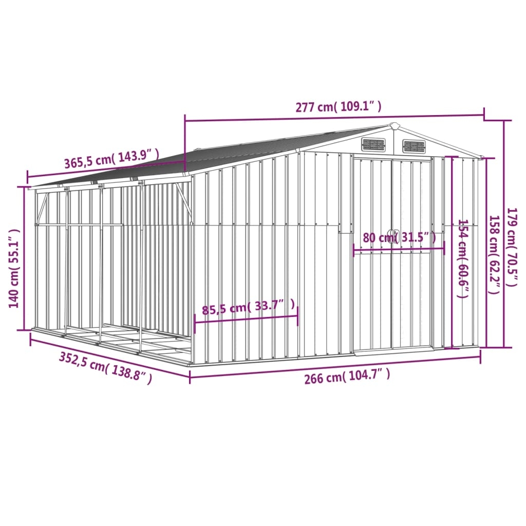 Schaffe zusätzlichen Stauraum im Freien und schütze deine Werkzeuge mit diesem multifunktionalen Gartenhaus. Robustes Material: Der Geräteschuppen besteht aus verzinktem Stahl, der rostfrei und auf eine lange Lebensdauer ausgelegt ist. Stahl ist ein außergewöhnlich hartes und starkes Material. Er bietet Robustheit und Stabilität. Die Verzinkung bietet einen besseren Schutz gegen Korrosion und eignet sich für Produkte, die im Freien und in rauen Umgebungen eingesetzt werden.Reichlich Stauraum: Dieses Metallhaus mit Brennholzunterstand bietet reichlich Platz, um Brennholz, Gartengeräte, Möbel, Ausrüstung und vieles mehr zu lagern.Bequeme Griffe: Die Tür des Gerätehauses ist mit Griffen versehen, die den Zugang erleichtern.Gute Belüftung: Das Gartenhaus ist mit 4 Lüftungsöffnungen ausgestattet, die für eine gute Belüftung sorgen, um die Ansammlung von Feuchtigkeit und unangenehme Gerüche im Haus zu verhindern.Schrägdach: Das Schrägdach sorgt für einen ungehinderten Wasserabfluss.