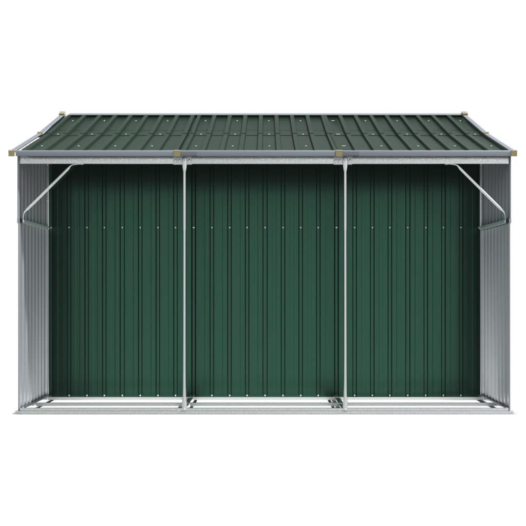 Schaffe zusätzlichen Stauraum im Freien und schütze deine Werkzeuge mit diesem multifunktionalen Gartenhaus. Robustes Material: Der Geräteschuppen besteht aus verzinktem Stahl, der rostfrei und auf eine lange Lebensdauer ausgelegt ist. Stahl ist ein außergewöhnlich hartes und starkes Material. Er bietet Robustheit und Stabilität. Die Verzinkung bietet einen besseren Schutz gegen Korrosion und eignet sich für Produkte, die im Freien und in rauen Umgebungen eingesetzt werden.Reichlich Stauraum: Dieses Metallhaus mit Brennholzunterstand bietet reichlich Platz, um Brennholz, Gartengeräte, Möbel, Ausrüstung und vieles mehr zu lagern.Bequeme Griffe: Die Tür des Gerätehauses ist mit Griffen versehen, die den Zugang erleichtern.Gute Belüftung: Das Gartenhaus ist mit 4 Lüftungsöffnungen ausgestattet, die für eine gute Belüftung sorgen, um die Ansammlung von Feuchtigkeit und unangenehme Gerüche im Haus zu verhindern.Schrägdach: Das Schrägdach sorgt für einen ungehinderten Wasserabfluss.