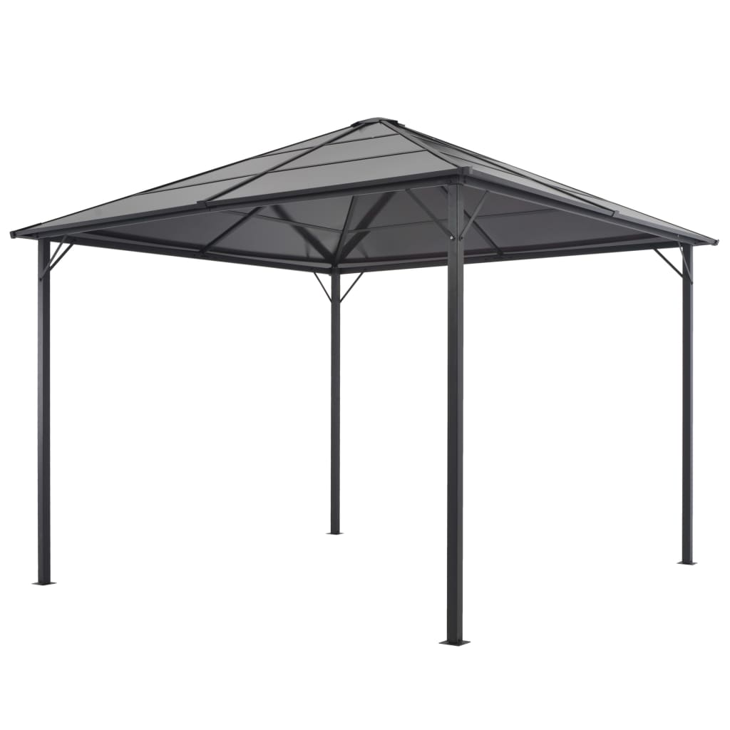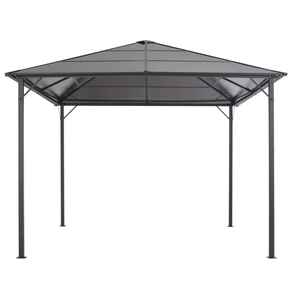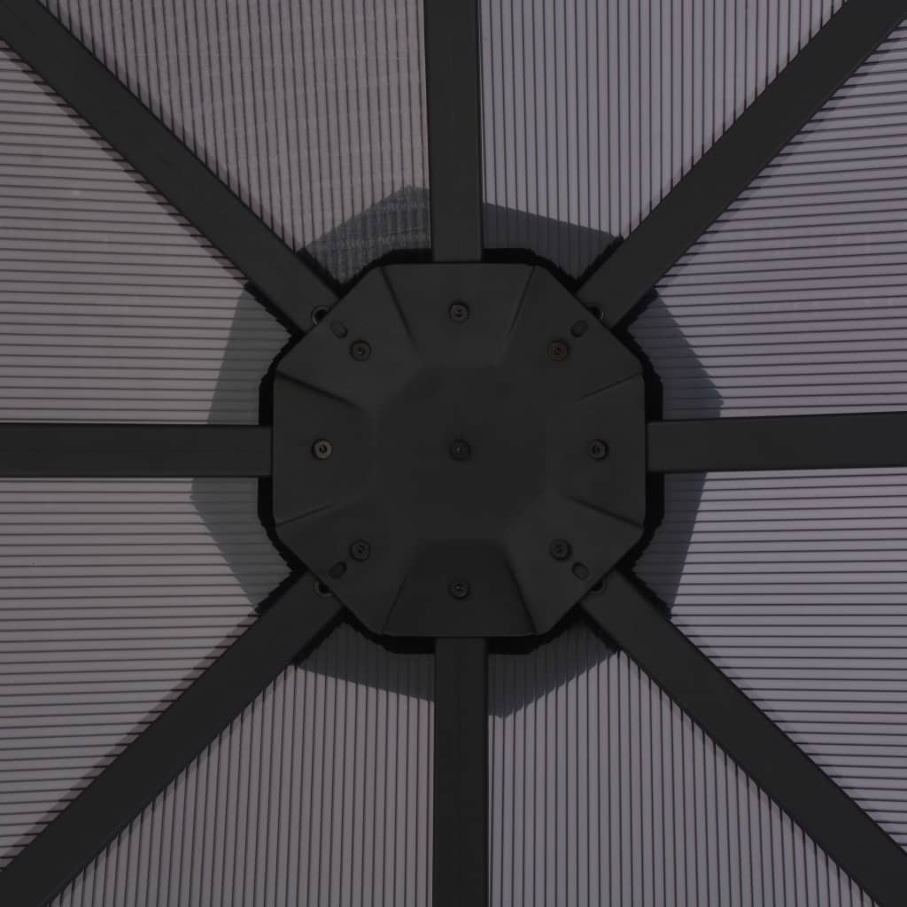 Dieser Pavillon hat ein klassisches, elegantes Design. Er wird der perfekte Sonnenschutz für Outdoor-Events sein, wie zum Beispiel Abendessen, Grillpartys, Familienfeiern usw. Das aus 6 mm starken, UV-beständigen PC-Platten hergestellte Dach schützt Sie vor den grellen und schädlichen UV-Strahlen der direkten Sonneneinstrahlung. Der Pavillon hat eine solide Konstruktion aus starkem, rostbeständigem Aluminium und Stahl. Klettverschlüsse sind zur einfachen Montage des Pavillons auch im Lieferumfang enthalten. Es ist schnell zu montieren und kann leicht mit den mitgelieferten Befestigungsmaterialien im Boden verankert werden. HINWEIS: Dieses Produkt sollte NIEMALS bei schlechtem Wetter wie starkem Wind, starkem Regen, Schnee, Sturm usw. verwendet werden.