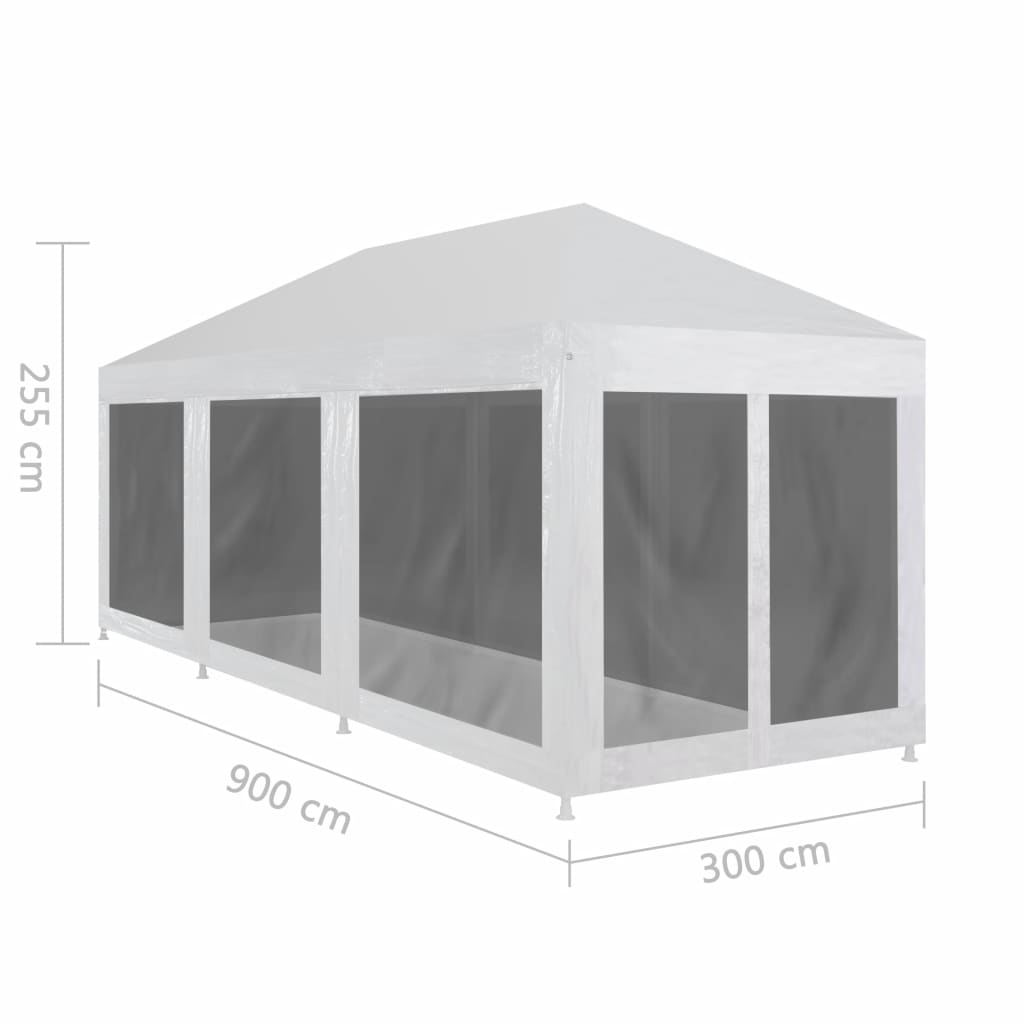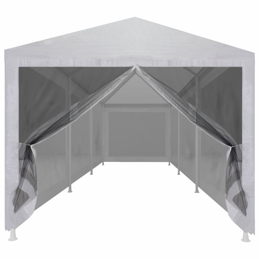 Unser Partyzelt mit Seitenwänden aus Mesh-Netzgewebe ist ideal für alle, die einen freien Blick haben möchten, ohne bei Outdoor-Aktivitäten von Insekten gestört zu werden. Dieses Partyzelt ist ideal für eine Vielzahl von Outdoor-Veranstaltungen wie Shows, Hochzeiten, Partys, Grillpartys, Festivals, usw. Hergestellt aus strapazierfähigem, pulverbeschichtetem Stahl, ist dieses Partyzelt extrem langlebig. Die Dachabdeckung ist aus hochwertigem PE gefertigt und somit wasser- und UV-beständig. Das Zelt hat sechs Netz-Seitenwände, die Sie vor lästigen Insekten schützen. Und eine der Seitenwände hat einen Eingang mit Reißverschluss für einen einfachen Zugang. Das Partyzelt ist mit dem mitgelieferten Montagezubehör einfach zu installieren. Hinweis: Dieser Artikel sollte NIEMALS bei rauen Wetterbedingungen, wie starkem Wind, Regenschauer, starkem Schneefall, Sturm, Hagel, usw., genutzt werden.