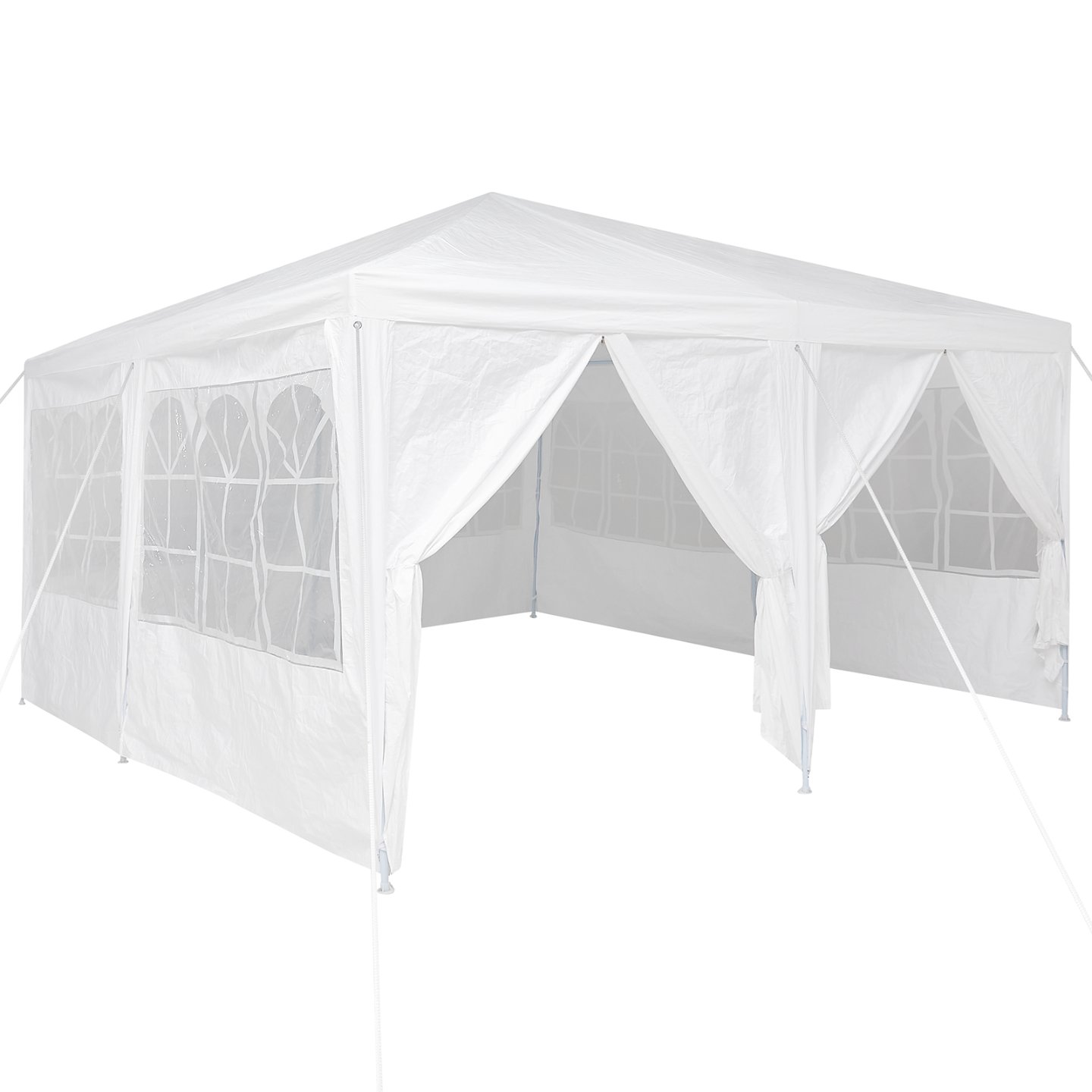 Das Partyzelt ist perfekt für jeden Outdoor-Spaß. Es bietet großzügigen Schutz für bis zu 30 Personen. Das schicke weiße Design verwandelt Balkon, Terrasse oder Garten in einen tollen Ort für Zusammenkünfte, Buffets oder Feiern. Großzügiger Platz: Mit 400 x 400 cm können die Gäste sich bewegen und essen, während sie sich unterhalten. Die Größe ist ideal für Outdoor-Events und ermöglicht verschiedene Anordnungen. Robustes Material: Hergestellt aus wasserabweisendem Polyester, schützt das Zelt vor unvorhersehbarem Wetter. Der stabile Metallrahmen sorgt für Sicherheit und Stabilität. Einfache Montage: Das Zelt kommt mit allem, was du brauchst, inklusive Erdankern und Seilen. Es ist einfach aufzubauen - mit nur zwei Personen. Vielseitige Anwendungen: Ideal für Anlässe wie Hochzeiten, Feste und Gartenpartys, erfüllt es praktische und ästhetische Anforderungen. Modernes Design: Das schlichte und matte Finish fügt sich gut in verschiedene Außenbereiche ein und verbindet Stil mit Funktionalität.