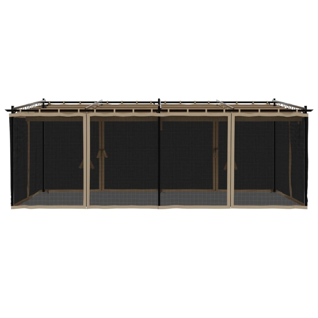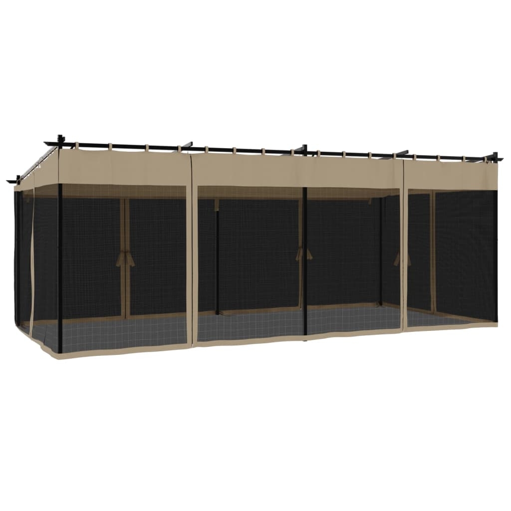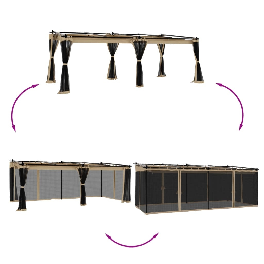 Schaffe unvergessliche Momente, entspanne dich und genieße die Zeit mit deiner Familie unter diesem Pavillon! Robuster und langlebiger Rahmen: Der Rahmen besteht aus rostfreiem Stahl und wird für den langfristigen Einsatz im Außenbereich gewählt. Das Gartenzelt ist stabil und standfest dank solider Balken, die das Dach tragen, und verstärkte Ständer. Viel Platz: Der Gartenpavillon ist groß genug, um deine Familie und Gäste zu beherbergen. Du kannst in diesem Regen- und Sonnenschutz auch einen Esstisch aufstellen. Schiebedach: Das Dach besteht aus strapazierfähigem Polyester mit einer PA-Beschichtung, das somit wasser- und UV-beständig ist. Darüber hinaus ist das Sonnendach einziehbar, sodass du es für optimalen Schatten verstellen kannst und so eine angenehme Umgebung im Außenbereich genießen. Moskitonetz-Seitenwände: Die Netz-Seitenwände sorgen für eine gute Luftzirkulation und ermöglichen es dir, eine private Atmosphäre mit Familie und Freunden zu genießen. Darüber hinaus können sie dich effektiv vor lästigen Insekten schützen und einen bequemen Ort der Ruhe bieten. Breite Anwendung: Dieses Terrassenpavillon kann vielseitig verwendet werden, von Mahlzeiten und Unterhaltung im Freien bis hin zu Entspannung und Meditation. Gut zu wissen:Dieses Produkt ist nicht für den Einsatz bei schlechten Wetterbedingungen wie starkem Wind, starkem Regen, Schnee, Sturm usw. geeignet.