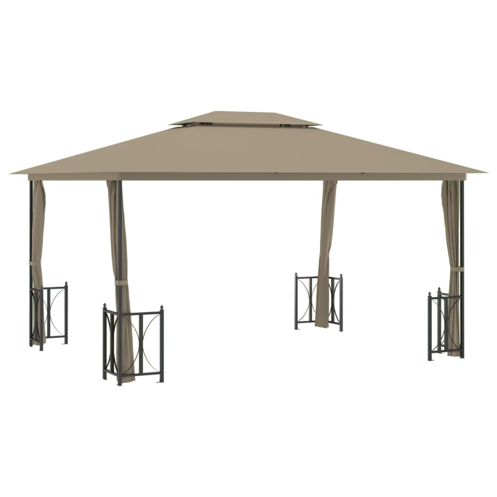Mit diesem Gartenpavillon sorgen Sie für Schatten und Privatsphäre in Ihrem Außenbereich, um ihn angenehmer zu gestalten! Erstklassiges Material: Die Gartenlaube verfügt über einen Rahmen aus pulverbeschichtetem Stahl. Sie ist daher sehr robust und langlebig. Das Dach besteht zu 100 % aus Polyester mit PA-Beschichtung, das wasserfest ist und die schädlichsten Strahlen abblendet.Doppeldach für Luftzirkulation: Das Doppeldach sorgt für eine bessere Luftzirkulation.Seitenwände für Schutz: Die mitgelieferten Seitenwände schaffen zusätzliche Privatsphäre und bieten vollständigen Schutz vor lästigen Moskitos und anderen Insekten. Dabei können Sie dank der abnehmbaren Seitenwände leicht zwischen einer offenen und einer geschlossenen Gartenlaube wechseln.Elegantes Design: Jeder Standfuß wird mit zwei Zierpaneelen geliefert, die für zusätzliche Schönheit sorgen. Hinweis:Dieses Produkt sollte NIEMALS bei schlechtem Wetter wie starkem Wind, starkem Regen, Schnee, Sturm usw. verwendet werden.