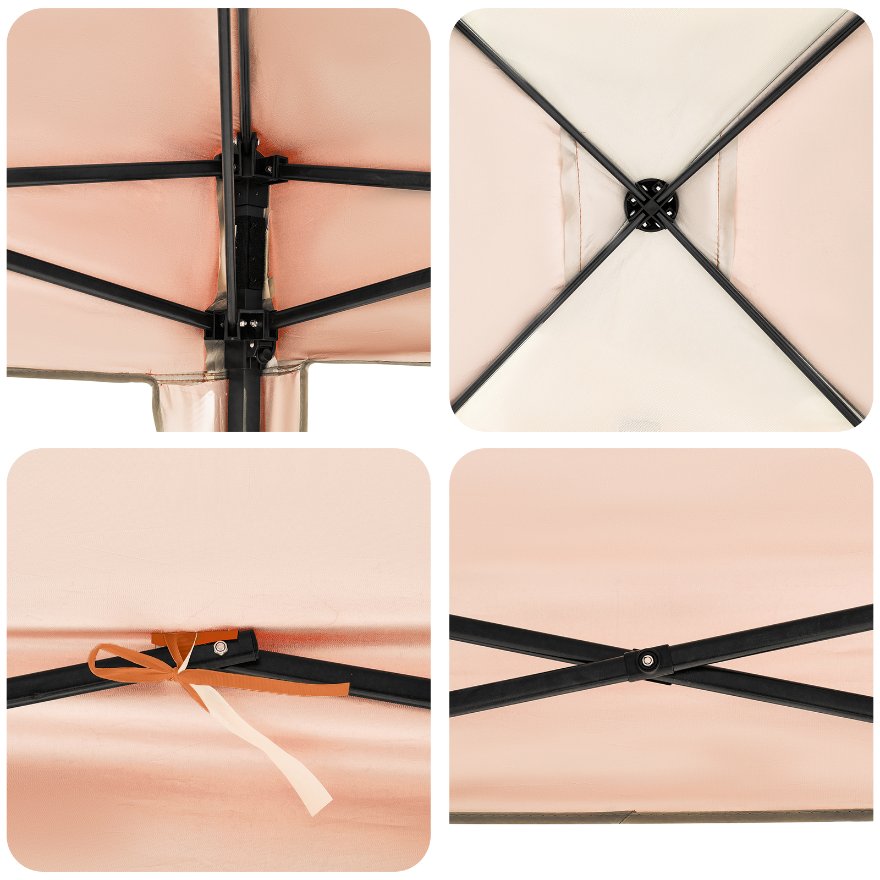 Dieses Outdoor-Gazebo ist eine klasse Wahl, um draußen Veranstaltungen zu machen. Mit seinem coolen Design fügt es sich super in jeden Garten oder auf jede Terrasse ein und sieht dabei noch gut aus. Es spendet Schatten und schützt deine Gäste vor dem Wetter – perfekt für Partys, Hochzeiten oder jede andere Gartenfeier. Haltbare Materialien: Hergestellt aus strapazierfähigem Stoff, bietet dieses Gazebo dir zuverlässigen Schutz, egal wie das Wetter ist. Es hält Platzregen und strahlenden Sonnenschein aus. Dieses Material sieht nicht nur toll aus, sondern ist auch top für entspannte oder schickere Events. Montagekomponenten: Im Zelt ist alles dabei, was du brauchst, um es aufzubauen. Mit nur zwei Personen kannst du sofort loslegen – ideal für spontane Events. Es beinhaltet Spannwerkzeuge und Befestigungen, damit alles stabil bleibt, während deine Gäste Spaß haben. Schnelles Aufbauen: Dank der Pop-up-Funktion ist das Aufstellen und Abbauen super easy. Egal, ob für ein spontanes Treffen oder ein geplantes Event, das einfache Design lässt dich dich auf deine Gäste konzentrieren und nicht mit dem Aufbau rumzuhampeln. Für den Außenbereich: Dieses Zelt ist perfekt für draußen. Es hält allen Wetterlagen stand, genau das, was du brauchst, um die gute Laune am Laufen zu halten. Egal ob windige Gartenpartys oder sonnige Terrasseneinladungen, es sorgt dafür, dass deine Gäste bequem bleiben. Pflege & Wartung: Die Pflege ist super einfach – einfach leicht mit einer weichen Bürste oder einem Tuch abwischen, damit es gut aussieht. Packe es trocken ein, um es gut zu halten, und wenn du es nicht brauchst, bewahre es in seiner Abdeckung auf, damit es geschützt ist.