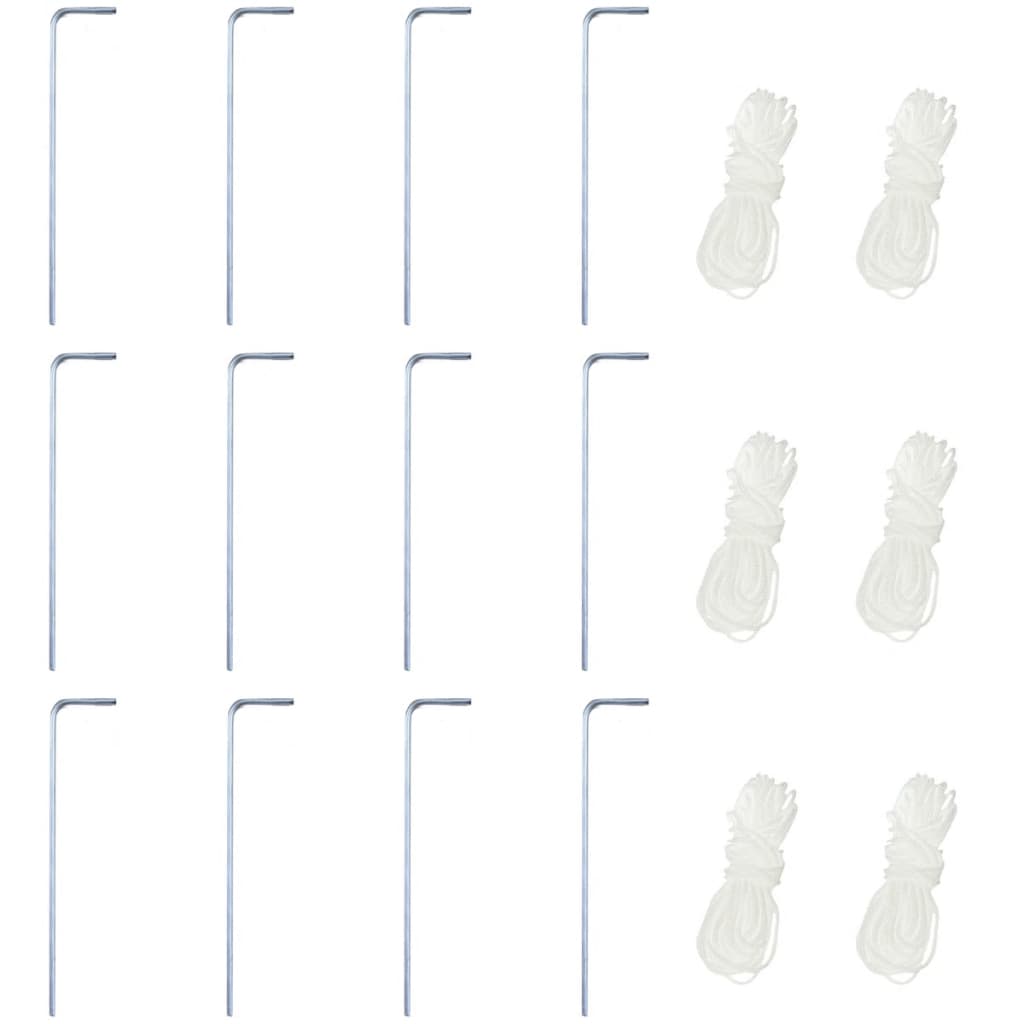- Im Lieferumfang sind auch Befestigungsschnüre und Erdnägel enthalten