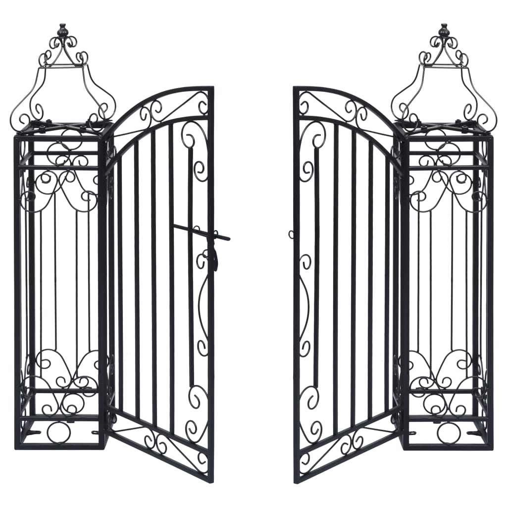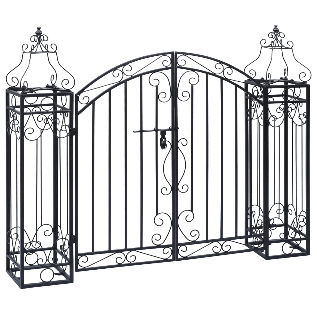 Dieses dekorative Gartentor ist als stilvoller, praktischer Eingang konzipiert, um Ihren Garten von der Außenwelt abzuschirmen. Dieses Gartentor ist perfekt verarbeitet, da es aus Schmiedeeisen hergestellt ist, das durch Erhitzen, Biegen, Formen und Verdrehen die gewünschten Form erhalten hat. Es wird samt Bolzen-Scharnier für eine schnelle Verriegelung und die Montage am Pfosten geliefert. Dieses Tor ist eine hervorragende Kombination aus Festigkeit, Korrosionsbeständigkeit und günstigem Preis!