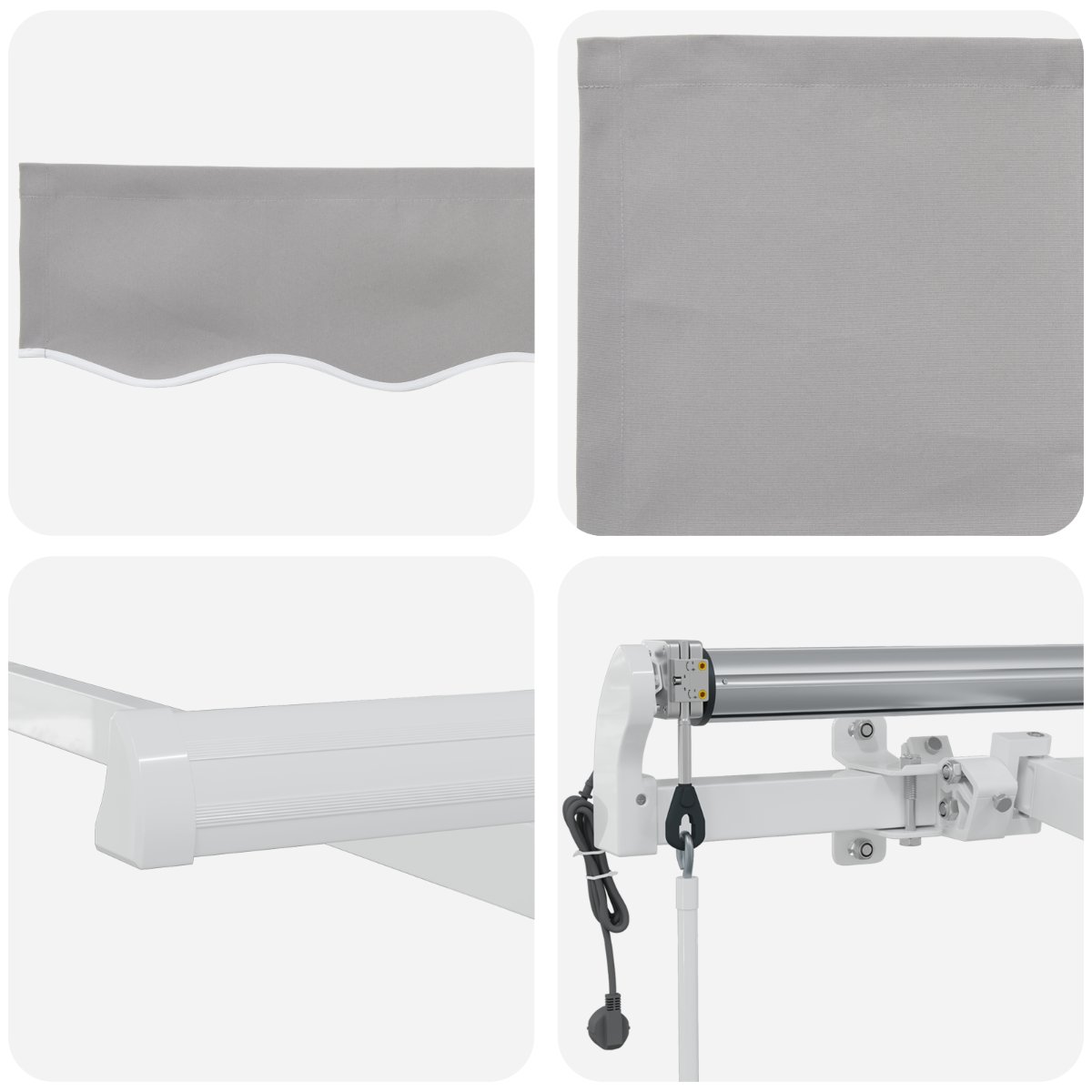 Gib deinem Außenbereich einen frischen Look mit der Automatischen Einziehbaren Markise in Hellgrau. Diese moderne Markise bietet tollen Schatten und Schutz und ist perfekt für deine Terrasse oder deinen Balkon. Diese Markise, gemacht aus starkem Polyester und robustem Aluminium, vereint Funktionalität mit Stil. Sie ist ideal für sonnige Tage, an denen du einen kühlen Platz zum Entspannen haben möchtest.