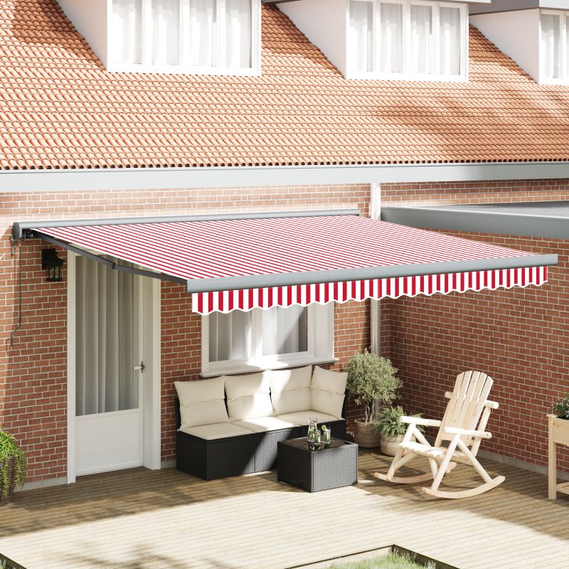 Gib deinem Außenbereich einen neuen Look mit der Manuell einziehbaren Markise. Sie ist perfekt für sonnige Tage und bietet Schatten sowie Schutz vor dem Wetter, wodurch dein Balkon oder Patio ein super chilliger Ort wird. Diese manuelle Markise hat ein stylisches rot-weiß gestreiftes Muster, das perfekt für alle Außenbereiche ist. Sie ist langlebig, wasserabweisend und UV-beständig – dafür sorgt sie, dass sie lange hält und ihre Aufgabe gut macht.